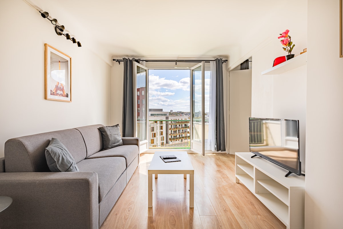 Encantador apartamento de 29 m2 totalmente renovado (marzo de 2024) y totalmente equipado a solo 22 minutos del centro de París. El salón está equipado con un sofá cama de calidad extremadamente fácil de desplegar con ropa de cama nueva La pequeña habitación es tranquila y tiene una cama de 200 cm x 140 cm. Se proporcionan sábanas y toallas. Equipamiento: lavadora, lavavajillas, smart TV, wifi, nevera, horno, aire acondicionado en el salón, máquina Nespresso, plancha