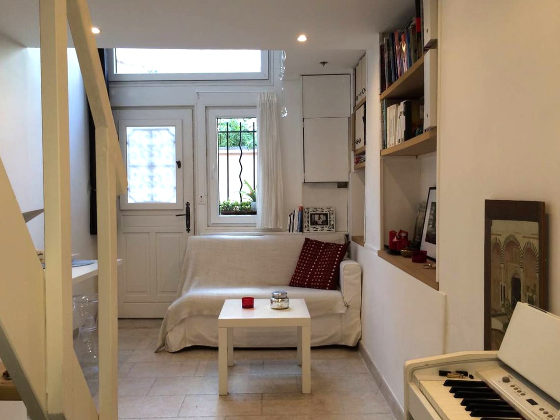 Pequeño estudio con taller-garaje de 32 m² y porche-jardín de invierno contiguo a una casa de los años 30 con patio plantado, ideal para una pareja (+ 1 niño), pequeño grupo de viajeros que no exceda de tres personas que trabajan temporalmente en París. Zona tranquila con tiendas de proximidad, restaurantes, cafeterías. Para la tercera persona, se puede instalar una pequeña cama adicional. 7 minutos del metro