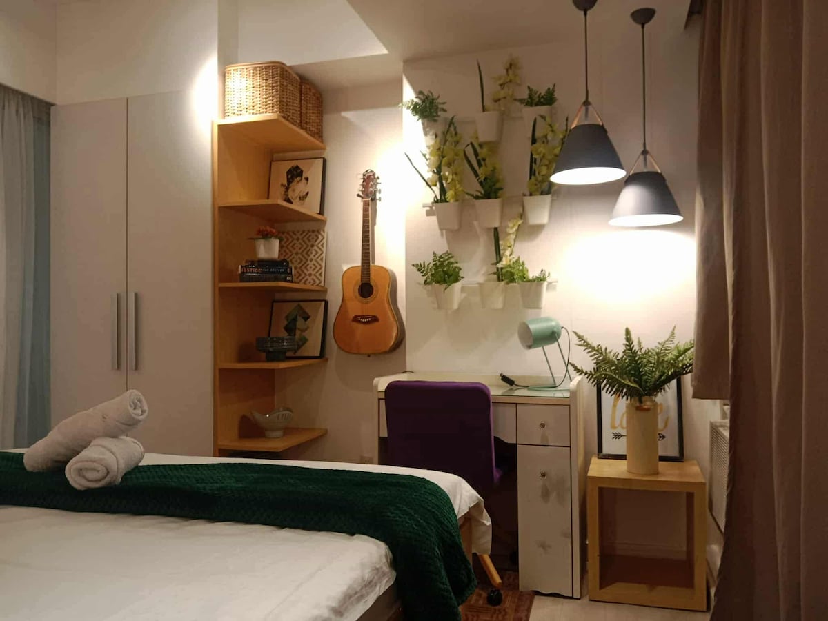 The location is just a walking distance to SM Bicutan and its only 15 minutes away from NAIA 1, 2 and 3. Parking space alloted for guest is available The rate is good for 2 but additional person is allowed up to 2 pax. A minimalist place with a touch of nature. A great place that offers all you need for a short stay. Sleep like you are just at home. An ambiance of home is what we aim, enjoy your stay with your love ones here. We offer you a stylish, comfortable room, with wifi and smart tv