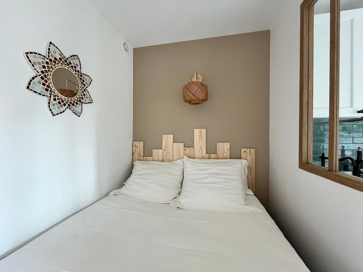 Bienvenido a l'Escapade, un nidito acogedor decorado a lo largo de las estaciones. Entre en un ambiente cálido donde le espera un ambiente acogedor y tranquilo. Venga en pareja, o con sus 2 hijos pequeños o un adolescente. Situado a 10 minutos del centro de la ciudad de Sanary sur Mer, podrá disfrutar de su mercado nocturno y de sus numerosas animaciones. Cerca de la costa, las playas de Beaucours, Portissol y la punta de la Cride, se puede caminar en un entorno exótico.