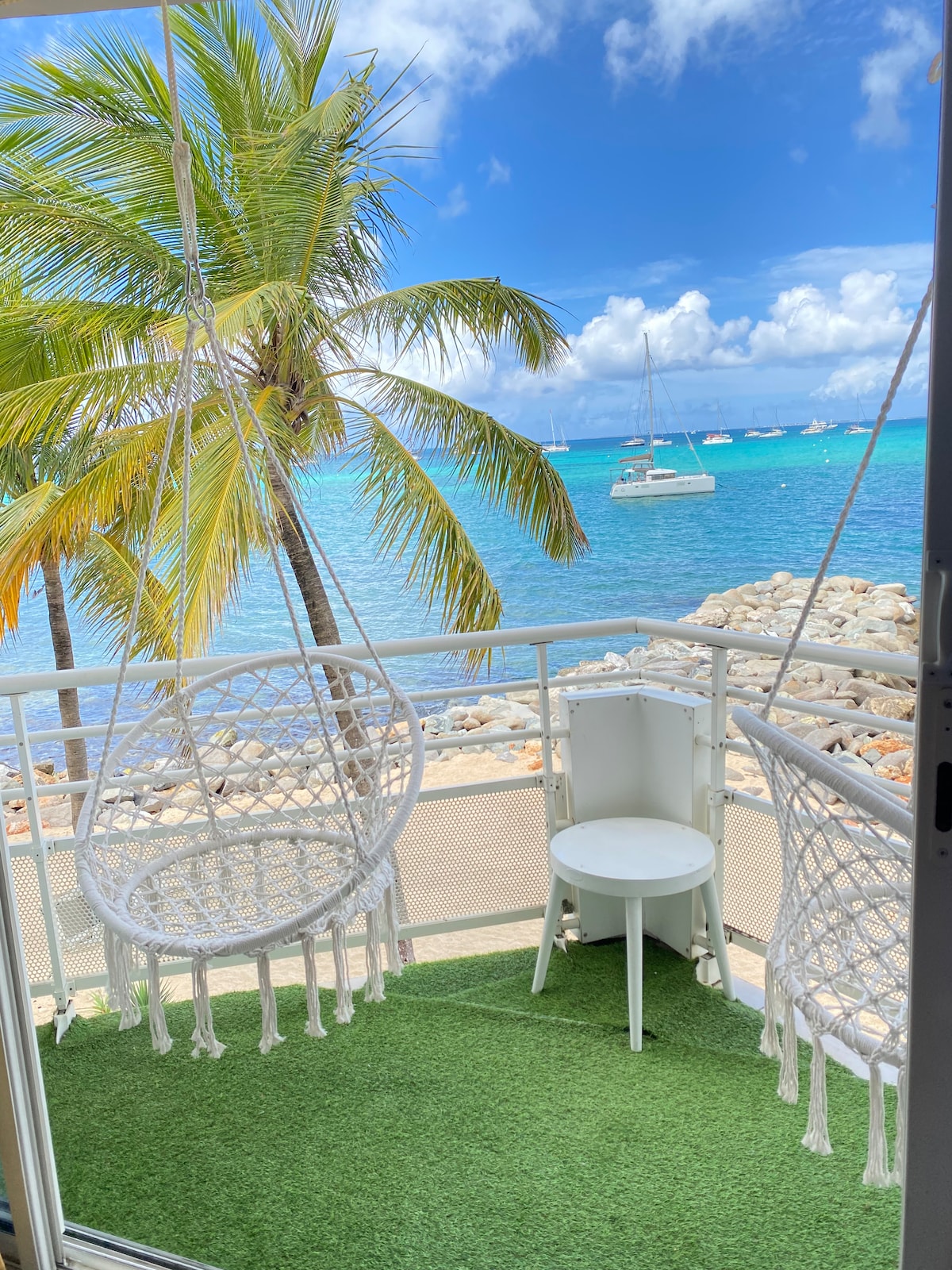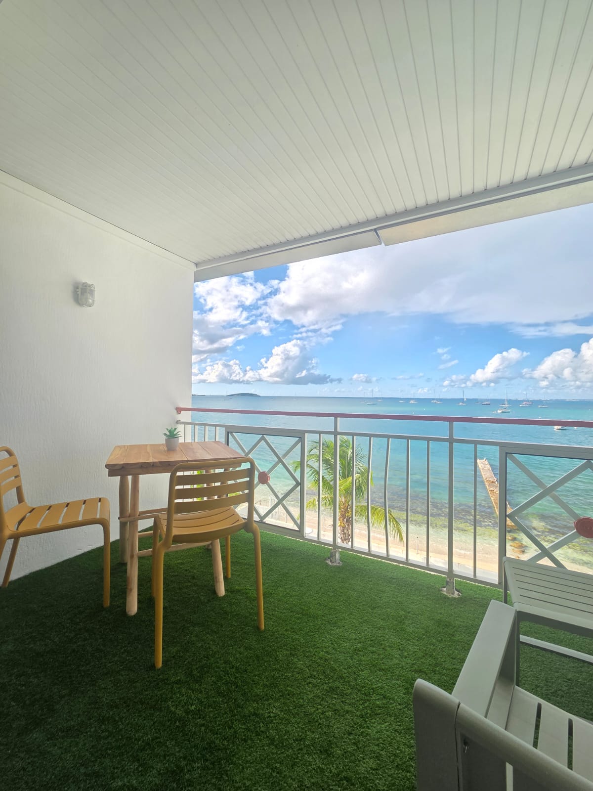 ¿Siempre has soñado con unas vacaciones con los pies en el agua? ¡Ya está! Déjese llevar por el sonido de las olas desde lo alto de su balcón y disfrute de una magnífica puesta de sol mientras disfruta de una buena copa de vino. A 3 minutos del ferry a Anguila y Saint Barth. Se trata de una residencia segura con una piscina y playa privada, ubicada a 5 minutos a pie del centro de la ciudad (Marigot) y sus tiendas, restaurantes y mercado local. Posibilidad de reservar un automóvil con nosotros.