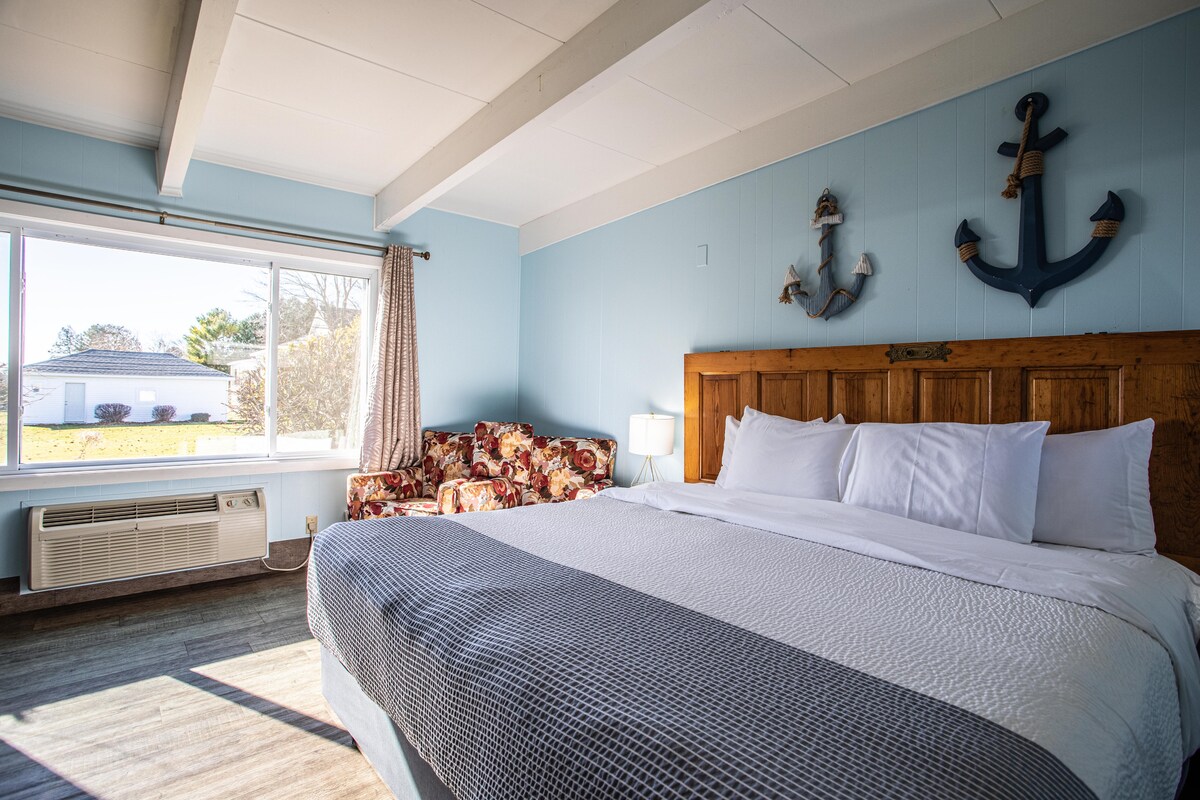 ¡Viaja como la realeza y alójate en The Queen Hotel, en el centro de Sturgeon Bay! Los colores vibrantes, el arte divertido, la cocina completa, la enorme ducha para dos personas y la espaciosa cama/sala de estar hacen de esta suite un refugio divertido y cómodo cuando no estás conquistando el condado. Cama tamaño king, TV inteligente, wifi rápido y muebles aterciopelados dan a la comodidad de la habitación que no se encuentra en ningún lugar del vecindario. La suite muestra el amor a Cher y la divertida decoración del hotel destaca a las mujeres y a la realeza por igual. Todo bienvenido, LGBQT+ amigable.