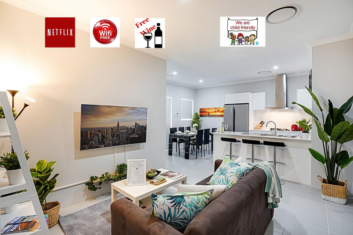 Cerca de ambos aeropuertos, esta casa elegante, moderna y decorada con buen gusto es perfecta para la familia exigente. Te dejará asombrado con sus niveles de comodidad y conveniencia. Su ubicación privilegiada te permite explorar el cercano Swan Valley, cerca de la histórica Guildford, con muchos restaurantes y cafeterías para todos los presupuestos. ✔ El desayuno continental también está incluido durante las dos primeras mañanas. ✔ Cocina ✔ Espacio de trabajo TV ✔ inteligente Wifi ✔ de alta velocidad ✔ Estacionamiento gratuito Más información a continuación,