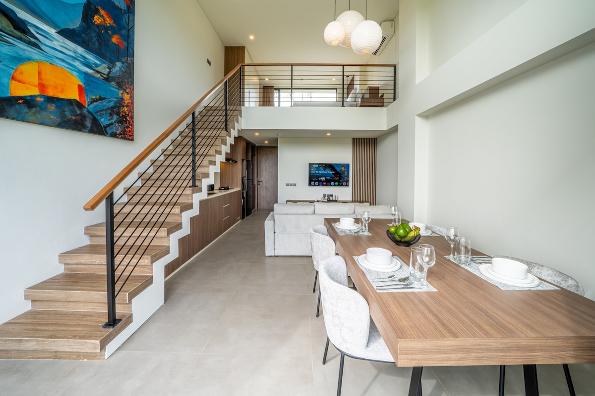 <b> Highlighted amenities: </b> - Private terrace with outdoor seating - Private Ice bath ideal for post-workout recovery - Private dry-heat sauna - Unit size 79 square meters - RO-filtered water that’s safe for both showering and drinking. Tucked across the second and third floors, this 1-Bedroom Apartment offers a calming space designed for wellness and comfort. Explore our spacious high-floor unit with complete amenities: https://airbnb.com/h/lru-h