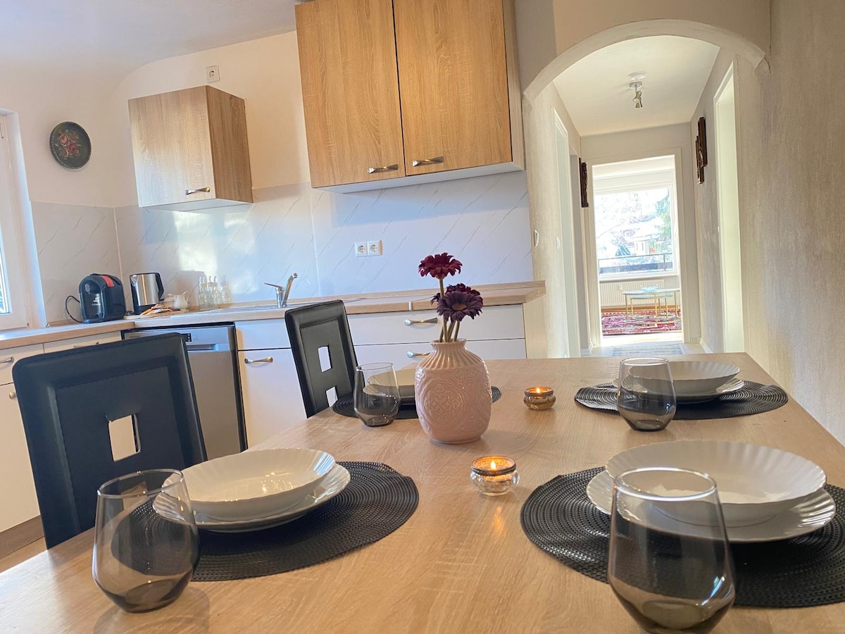The light-flooded 2 1/2-room apartment (approx. 78 m²) has a cosy tiled stove with fitted seating area. A wonderful bedroom with large double bed, high-quality and fully equipped fitted kitchen with dishwasher. A bath with shower bathtub and a separate toilet make the domicile round and offer up to four persons a piece of home during holiday and business trip.