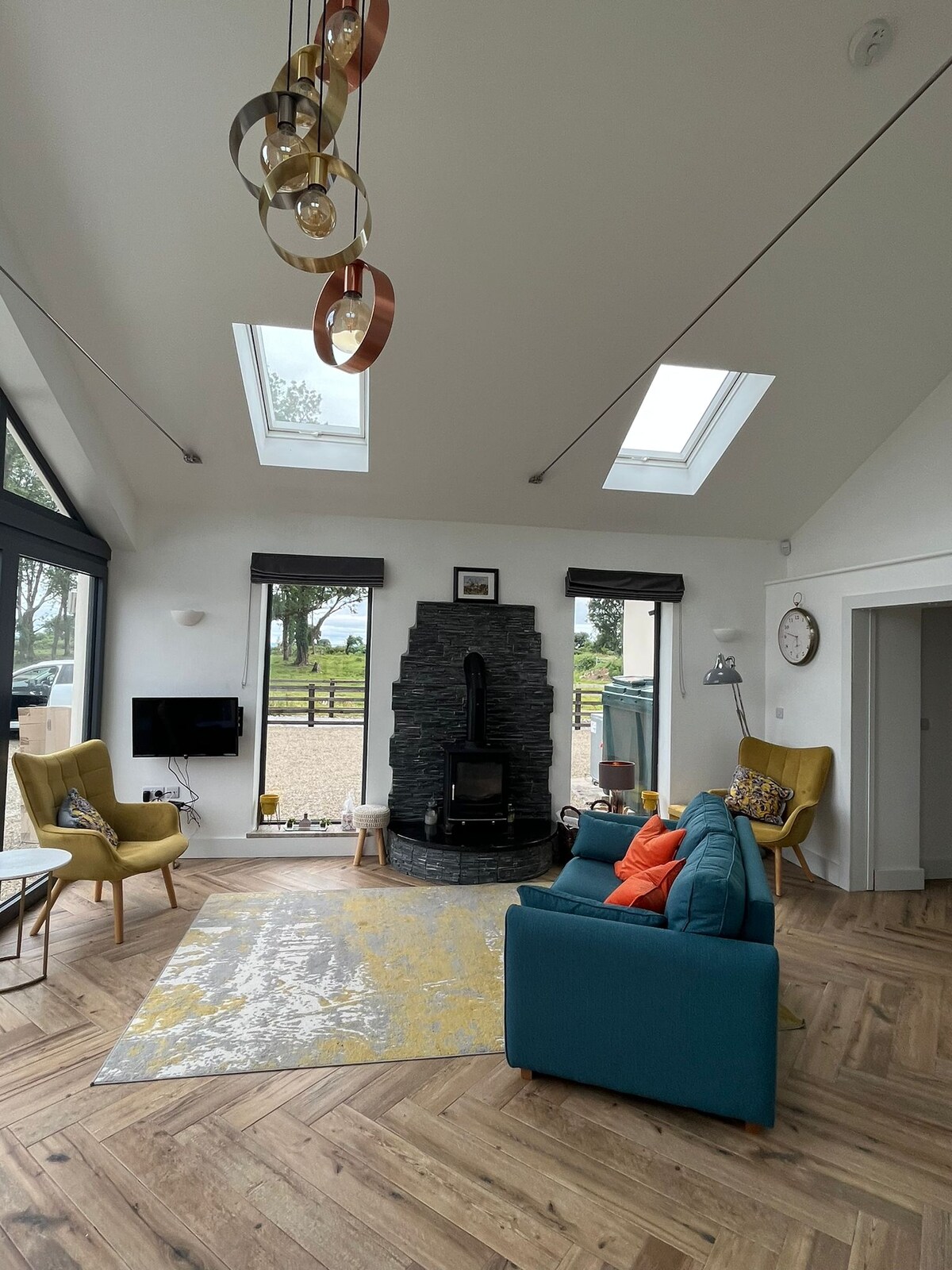 Recientemente renovado, este elegante granero de planta abierta se encuentra en el idílico paisaje rural del condado de Clare. Colinda con mi casa de campo de piedra de 150 años de antigüedad y ofrece un espacio vacacional independiente ideal para aquellos a los que les gusta la paz y la tranquilidad «fuera de lo común». El uso inteligente del espacio significa que tienes tu propia cocina, comedor y zona de dormitorio con una pequeña ducha/inodoro en suite y la sala de estar incluye un piano de cola Bluthner único para los amantes de la música.