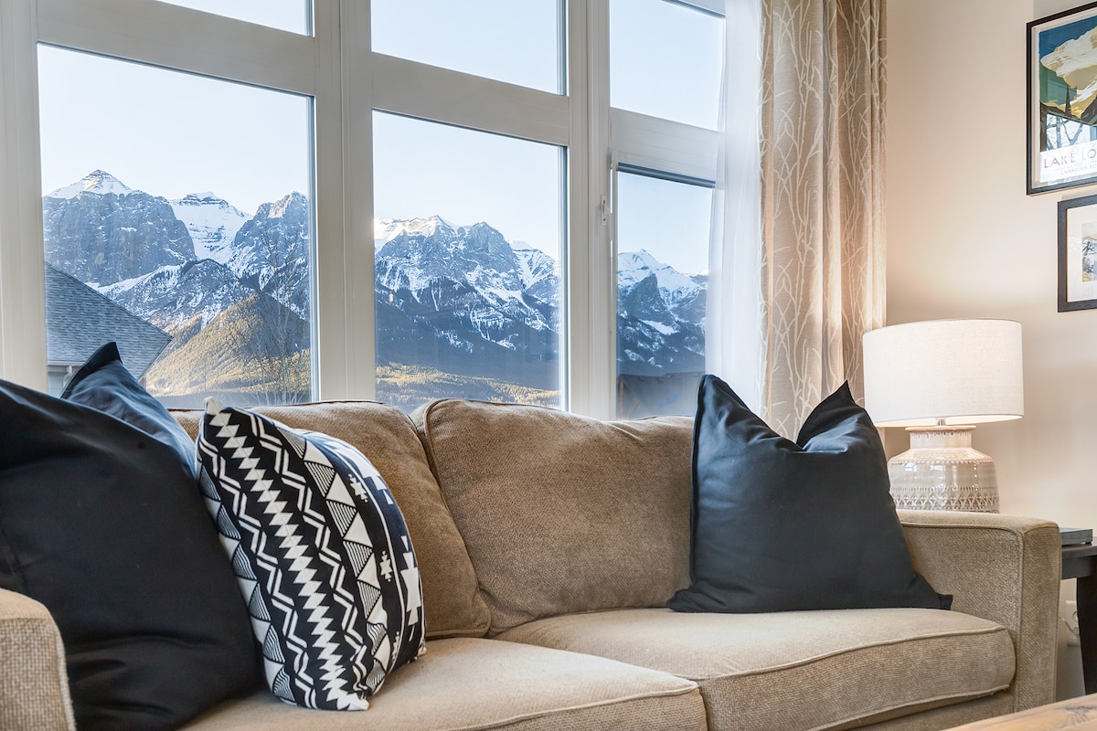Este lujoso apartamento de dos dormitorios de 1700 pies cuadrados cuenta con todo lo que necesitas en un hogar lejos de casa. ¡Disfruta de una hermosa cocina abierta, una enorme chimenea y techos abovedados que ofrecen impresionantes vistas panorámicas a las montañas! Fuera de tu apartamento hay senderos para caminar, cafeterías, tiendas de comestibles, restaurantes y mucho más. Este lugar de vacaciones es ideal para parejas, familias y grupos que buscan el mejor alojamiento para explorar las Rocosas canadienses.