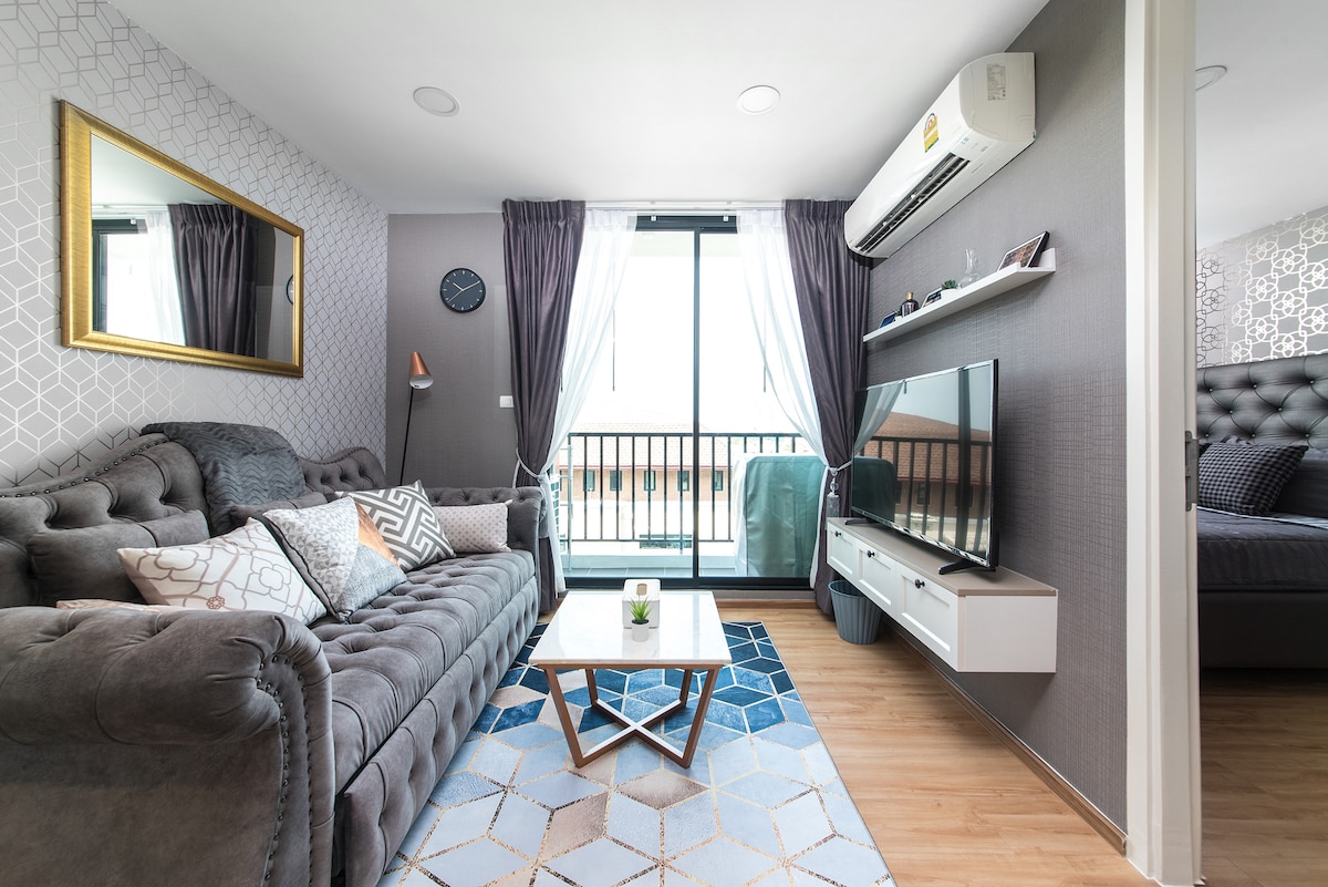 Te invitamos a elegir y alojarte en mi apartamento y espero que tengas un gran viaje a Tailandia. La casa está en Rama9, departamento LOFT entregado en 2024.La habitación tiene unos 40 metros cuadrados, incluyendo un dormitorio, una sala de estar y comedor, una cocina y un baño, con capacidad para 3 adultos. (tps: cuando el número de huéspedes en la reserva es de 1-2, por defecto solo hay una cama en el dormitorio, si necesitas añadir un sofá cama, por favor, indica el número de personas como 3 en el momento de la reserva, y ponte en contacto con nosotros después de la reserva para informarnos, organizaremos al personal para preparar el sofá cama antes de tu estancia) El precio de la reserva incluye el uso de toda la propiedad, así como el coste del gimnasio, la piscina y el espacio de coworking.