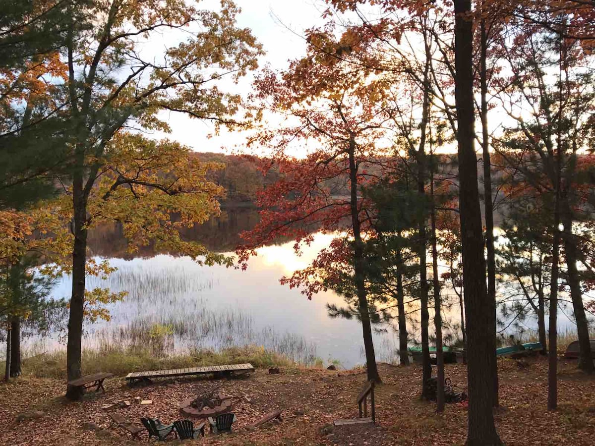 Aléjate de todo en esta cabaña junto al lago de los años 50 recién remodelada. ¡Se encuentra literalmente a pocos metros del lago! 1 dormitorio (cama tamaño queen) con loft adicional y sala de estar. Cocina completa y baño. Espacio de muelle incluido para tu propio barco; ¡hay un embarcadero justo al final de nuestra calle! Encontrarás una silla LaZBoy totalmente reclinable en la sala de estar; sofá cama y cuna plegable disponibles en la cabaña. Aparcamiento en la entrada. Cubierta, parrilla de gas, chimenea. ¡Ven a ver la diversión en la cadena de 6 lagos de Chetek!