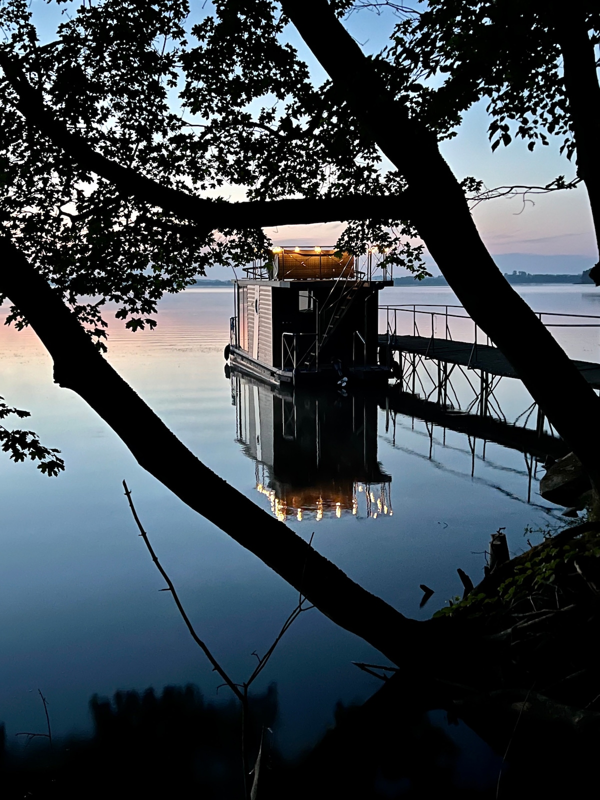Acogedora casa de madera con playa privada, embarcadero, bote de remos y fantásticas vistas del lago y los árboles circundantes. Terminado con un alto nivel, 2 baños, 4 dormitorios, sala de estar con chimenea, cocina totalmente equipada y gran terraza, todas diseñadas teniendo en cuenta la comodidad y la satisfacción de nuestros huéspedes. En la parcela vallada alrededor de la casa, aparte de un lugar de fogata con bancos hechos a mano y cómodas hamacas, puedes encontrar mucho espacio verde que permite todo tipo de recreación y relajación familiar.