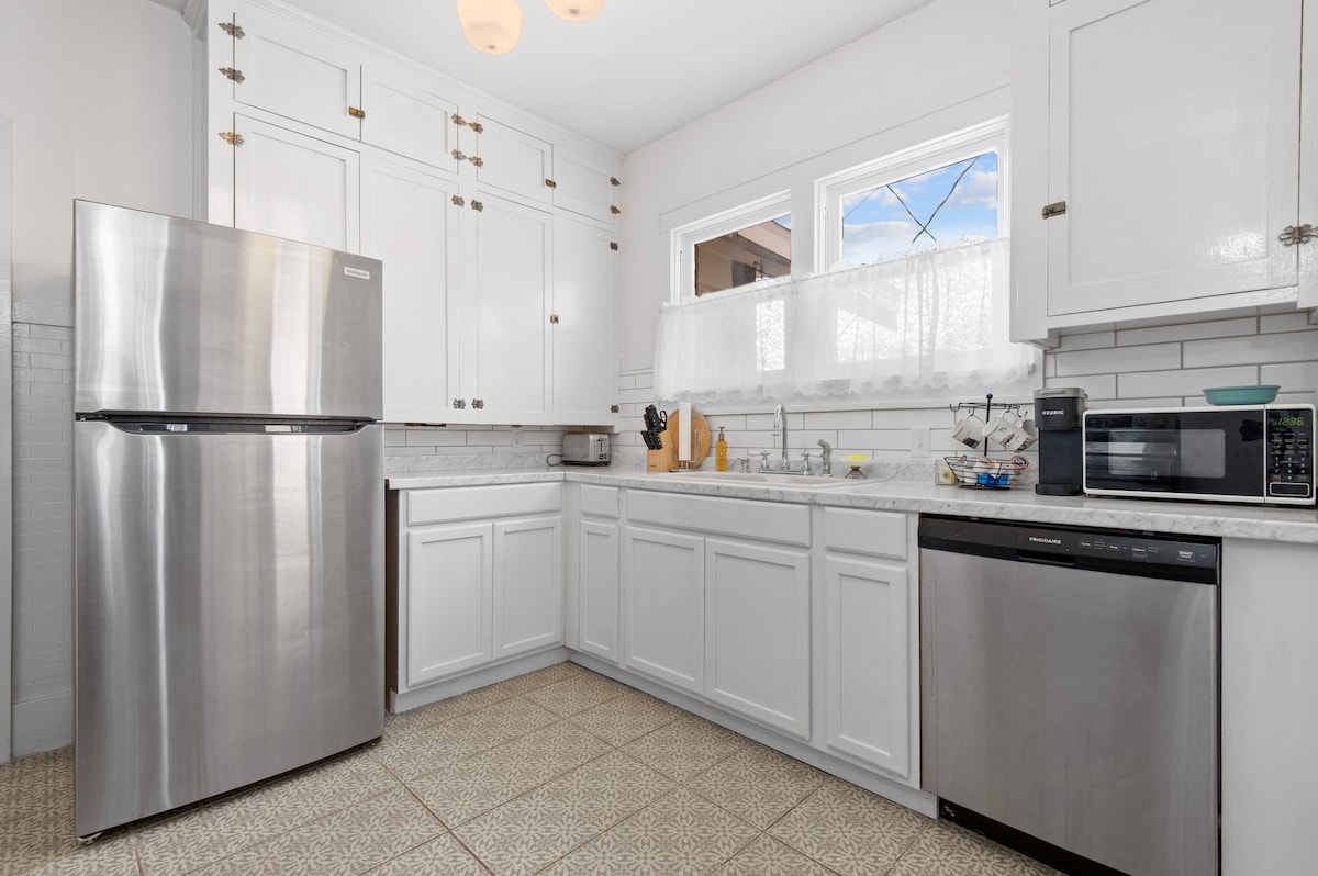 A solo una hora al norte de Tulsa, OK, esta acogedora casa está ubicada a solo una milla del centro de Bartlesville y del Centro Comunitario y a 30 minutos de Pawhuska, donde se encuentra The Pioneer Women Mercantile. OKWU también está a la vuelta de la esquina. Rodeada de varios lagos a menos de 30 millas, esta encantadora casa de 2 dormitorios y 1 baño, con cocina completa, lavadora y secadora, da la bienvenida a mascotas entrenadas con un patio trasero totalmente vallado. Ideal para una escapada en pareja, unas vacaciones perfectas con esa persona especial o para crear recuerdos familiares.