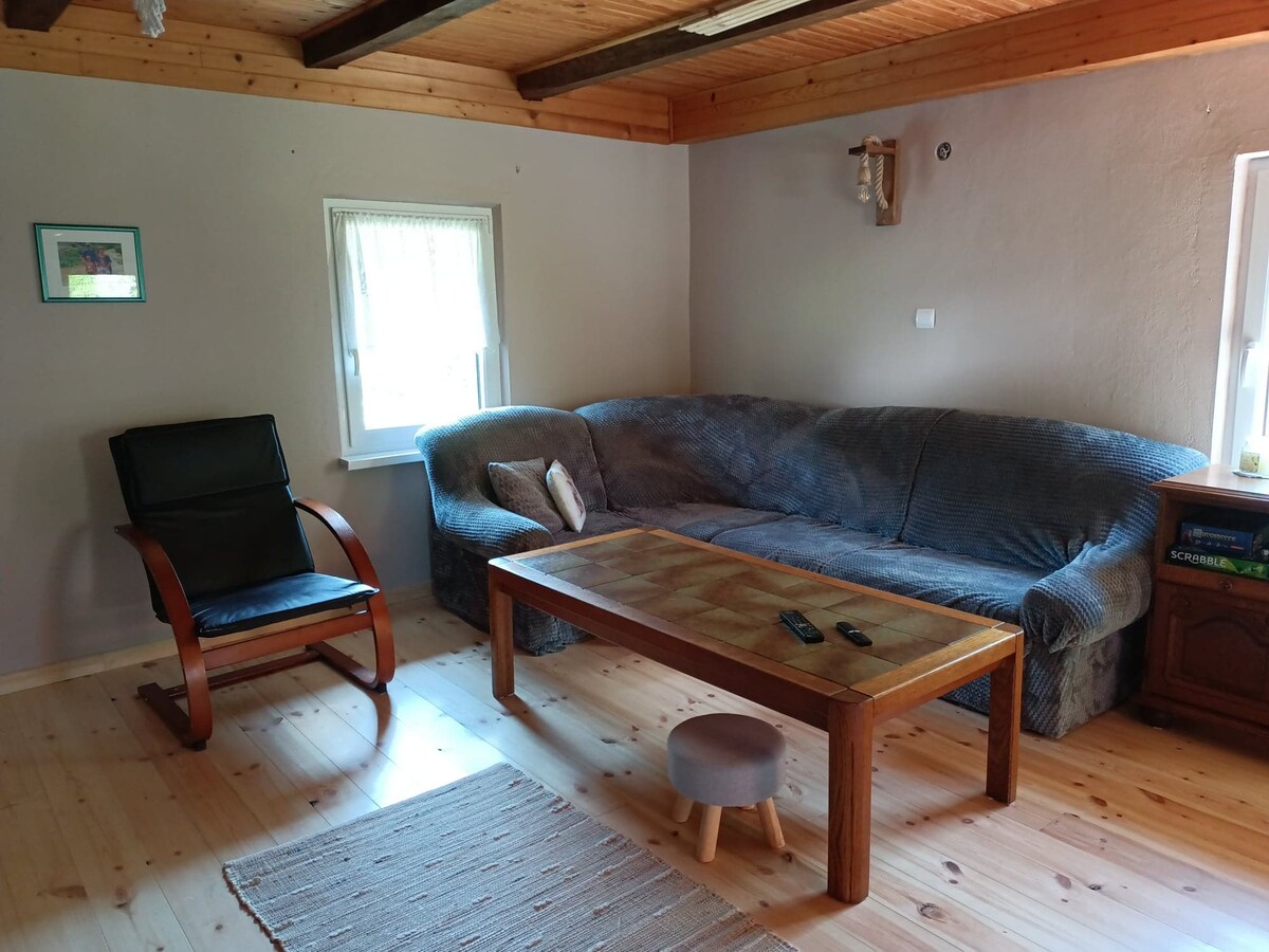 Sumérgete en los sonidos de la naturaleza. Le invitamos a reservar un alojamiento en un molino construido con una técnica de hace 200 años. No hay nada en él que se pueda comprar en una tienda de construcción. Ofrecemos a nuestros huéspedes un baño de estilo clásico, con un suelo de ladrillo antiguo y una bañera de hierro fundido, una cocina totalmente equipada, un salón y un dormitorio. Es un lugar ideal para relajarse para aquellos que quieren escapar del bullicio de la ciudad y finalmente escuchar sus pensamientos. La falta de internet y la muy mala cobertura de telefonía móvil ayudarán a ello.