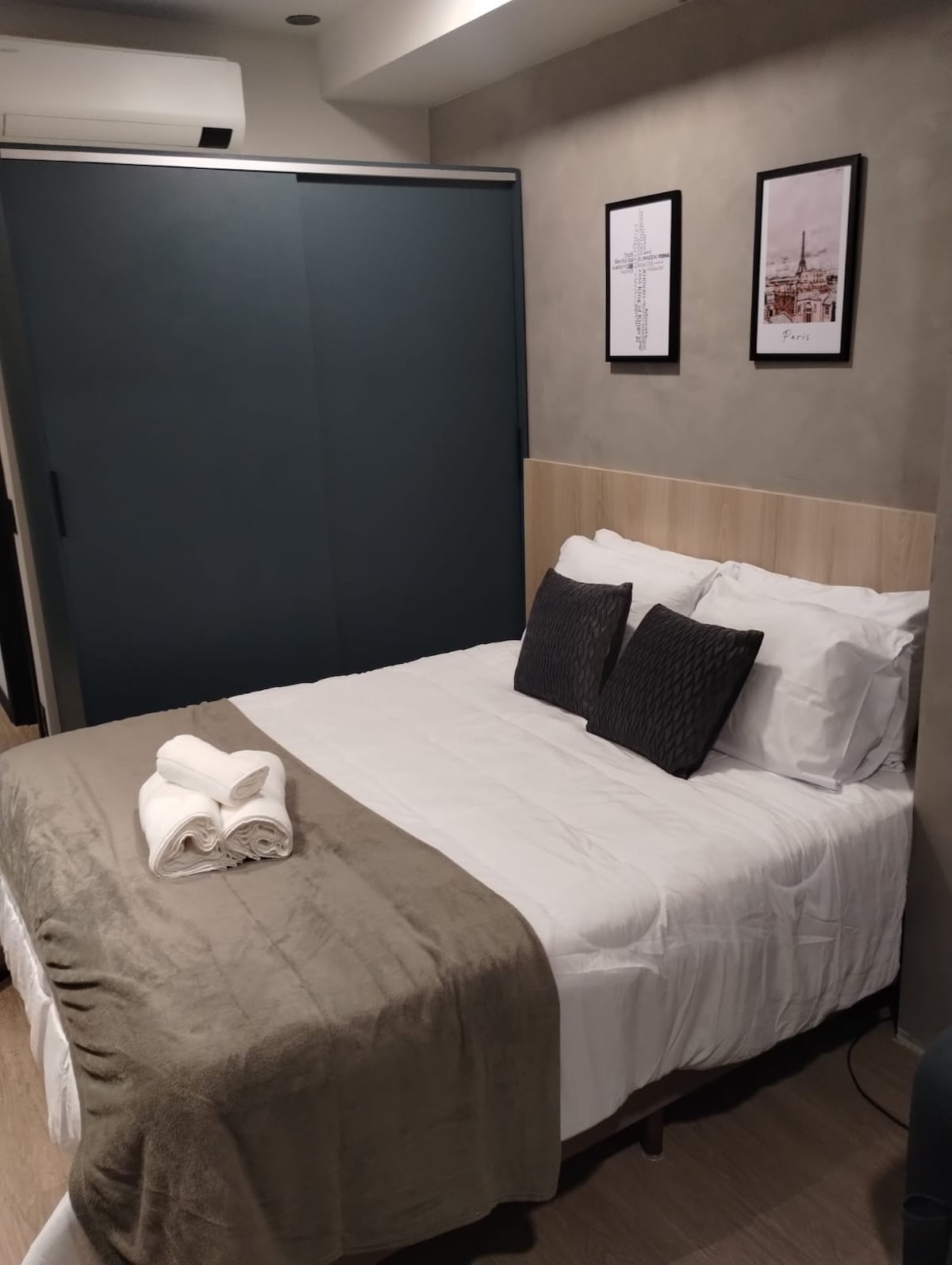 Apartamento aconchegante com excelente localização no centro de Alphaville! Próximo à padarias, mercados, shoppings, centro comercial, restaurantes, bancos, farmácias e hospitais. Localizado em rua silenciosa, segura e tranquila, o edifício conta com: Recepção 24h. Restaurante com café da manhã, almoço e jantar (consultar valores no restaurante). Academia. Piscina (no momento encontra-se em reforma) Entre outros… OBS: é possível separar as camas para 2 de solteiro.