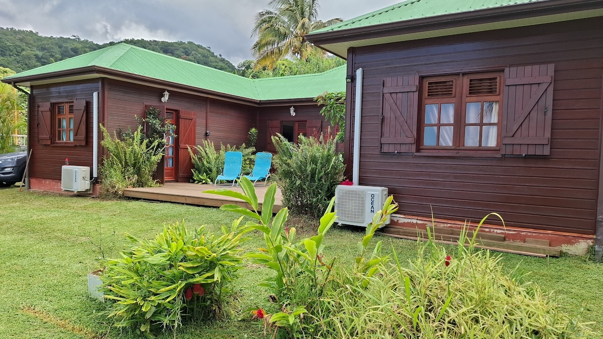 Querida Coco... ¡Tranquilidad y relajación en esta verdadera casa criolla enclavada en un jardín tropical con vistas al Gran Cul de Sac Marin, ambiente idílico y cambio de escenario asegurado! Después de un día de descubrimiento en nuestra maravillosa isla, ¿qué mejor que un momento de relajación en un spa privado dentro de la vegetación local y en la mayor intimidad? Esta casa de madera equipada con refinamiento ofrece todo el equipamiento necesario para garantizarle una estancia inolvidable.