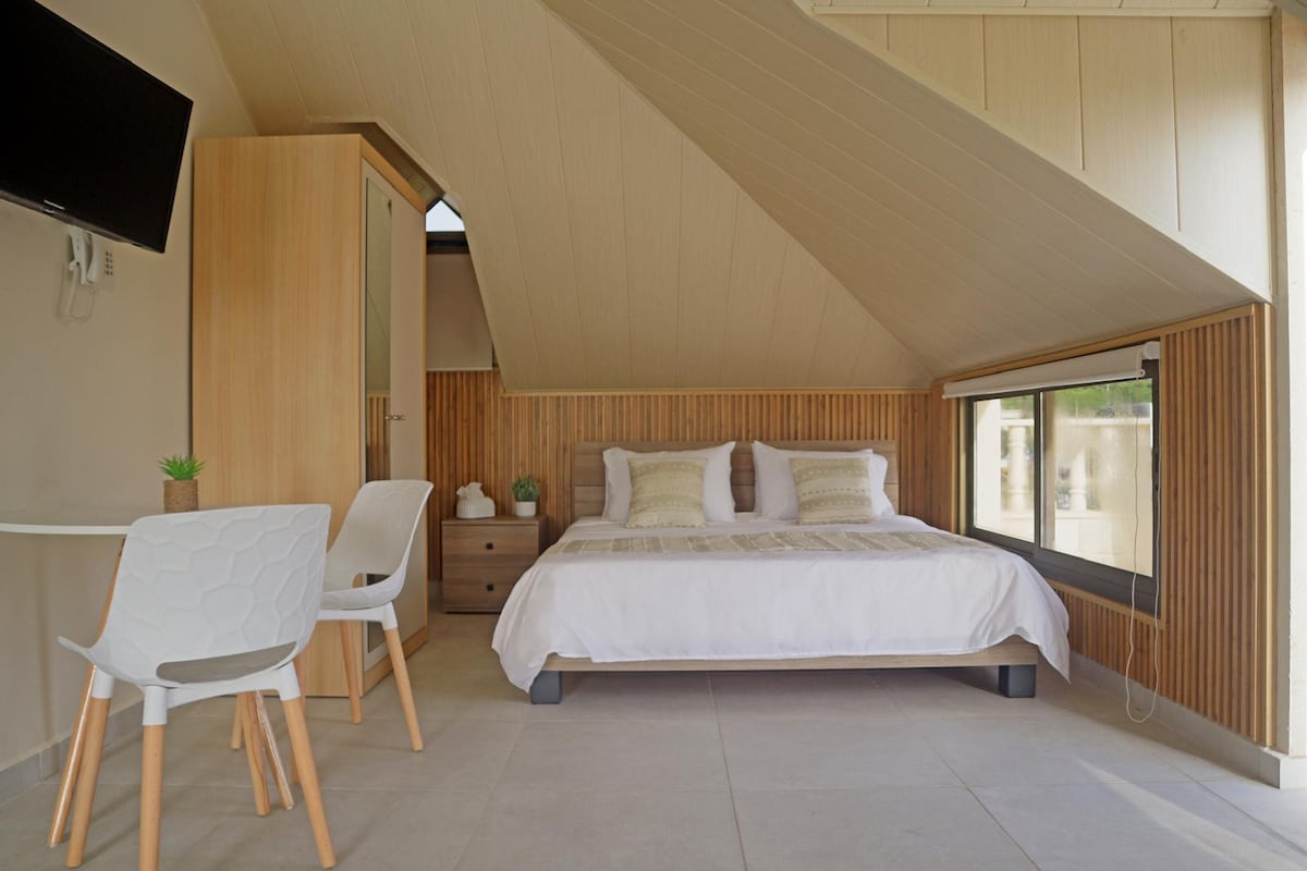 ¡Las habitaciones se hicieron con amor y cuidado para ofrecer a nuestros clientes la mejor experiencia! ¡Totalmente equipado y amueblado con sencillez y encanto! ¡Una piscina compartida con una excelente vista al mar y una sala de estar para reunirte con tus seres queridos!