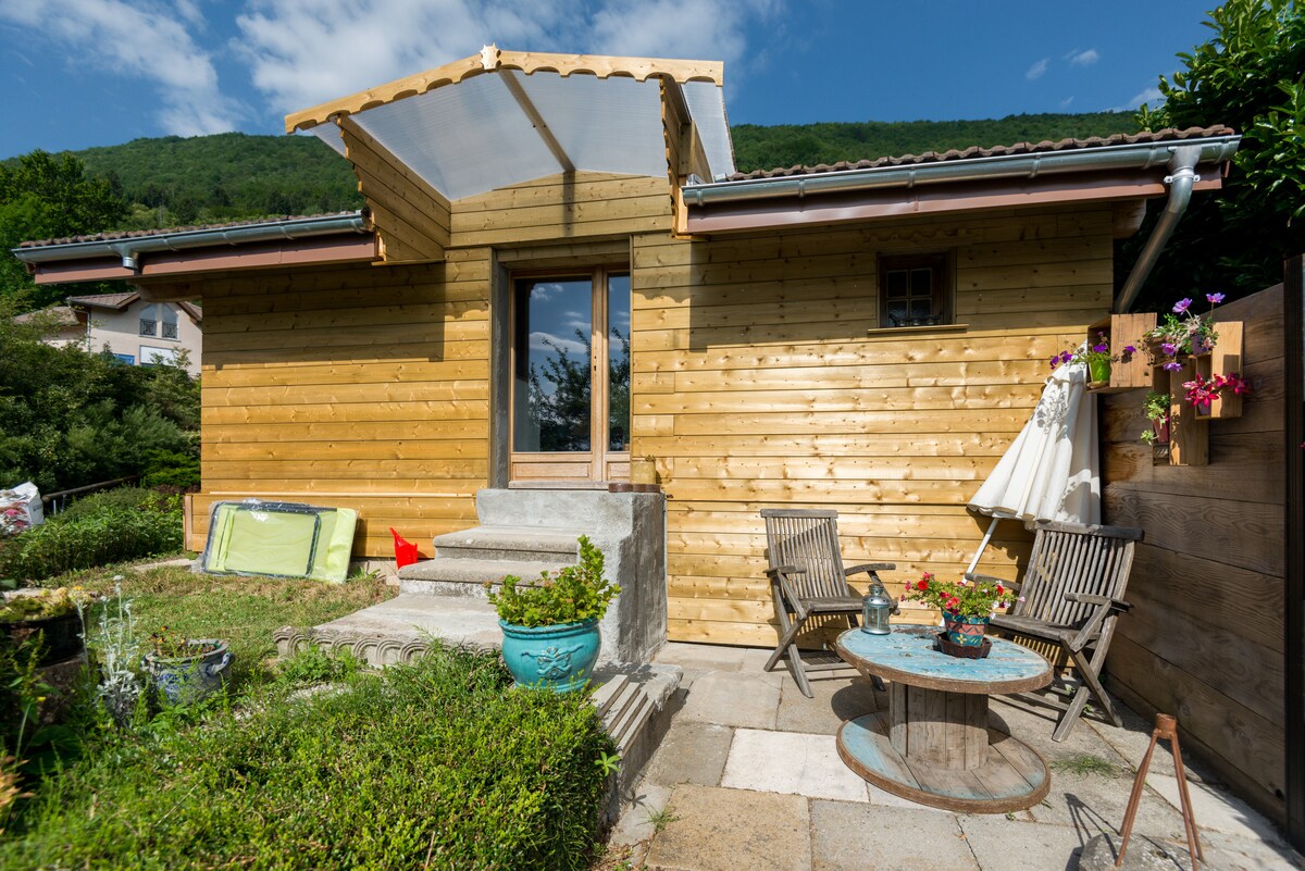 Bonita casa de campo de 32 m2 con terraza y jardín independiente en una parcela de 220 m2 aproximadamente, vistas al lago y a las montañas. Un dormitorio con cama doble, un cuarto de baño y un aseo independientes. Decoración con carácter, todo de madera con una estufa de pellets. Plazas de aparcamiento en las cercanías.