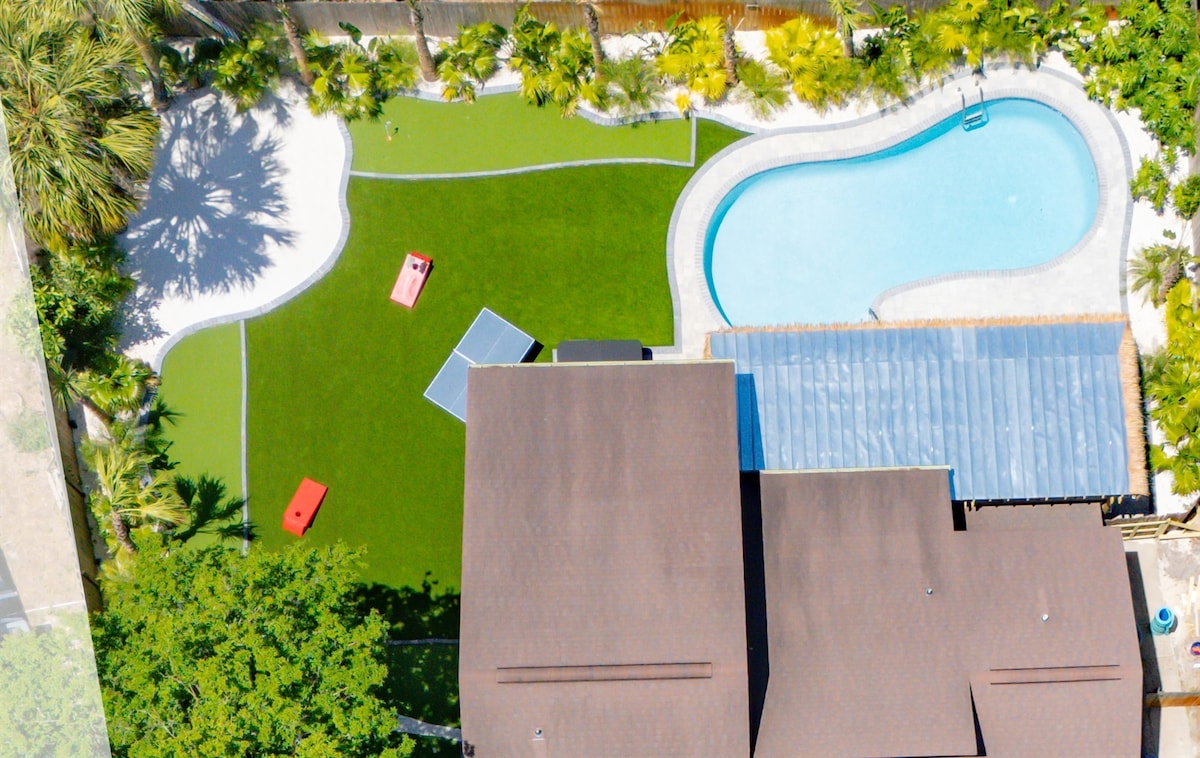 Oasis tropical, bar tiki, piscina, minigolf, jacuzzi