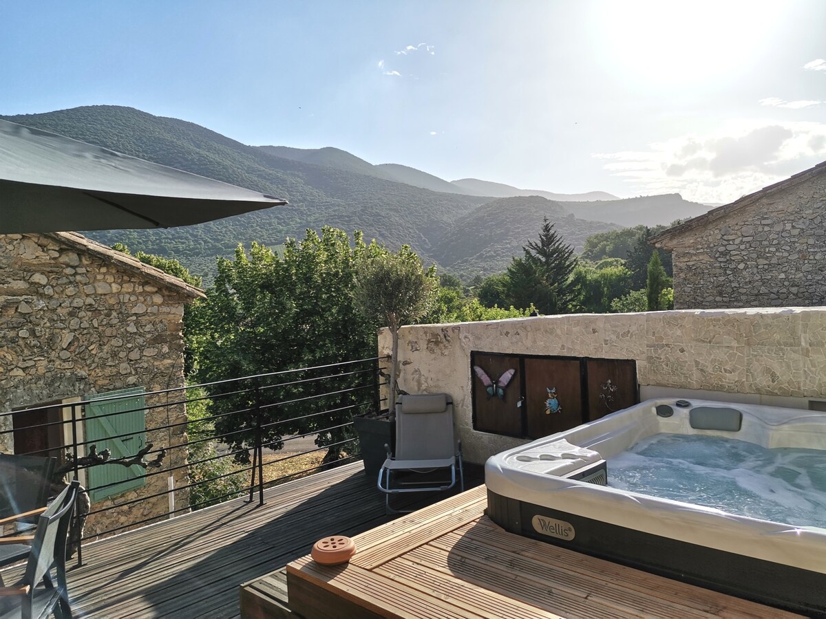 Casa auténtica en el corazón de un pueblo provenzal medieval Una casa de pueblo de piedra muy bonita con terrazas, piscina y vistas espectaculares, situada en la parte superior del pueblo provenzal medieval de Crestet. La casa tiene vistas sobre el Ventoux, La casa es independiente, pero también se puede alquilar con una casa vecina con 4 camas adicionales. La piscina (abierta del 1 de junio al final de septiembre) está debajo del pueblo a 5 minutos andando con una vista muy bonita.