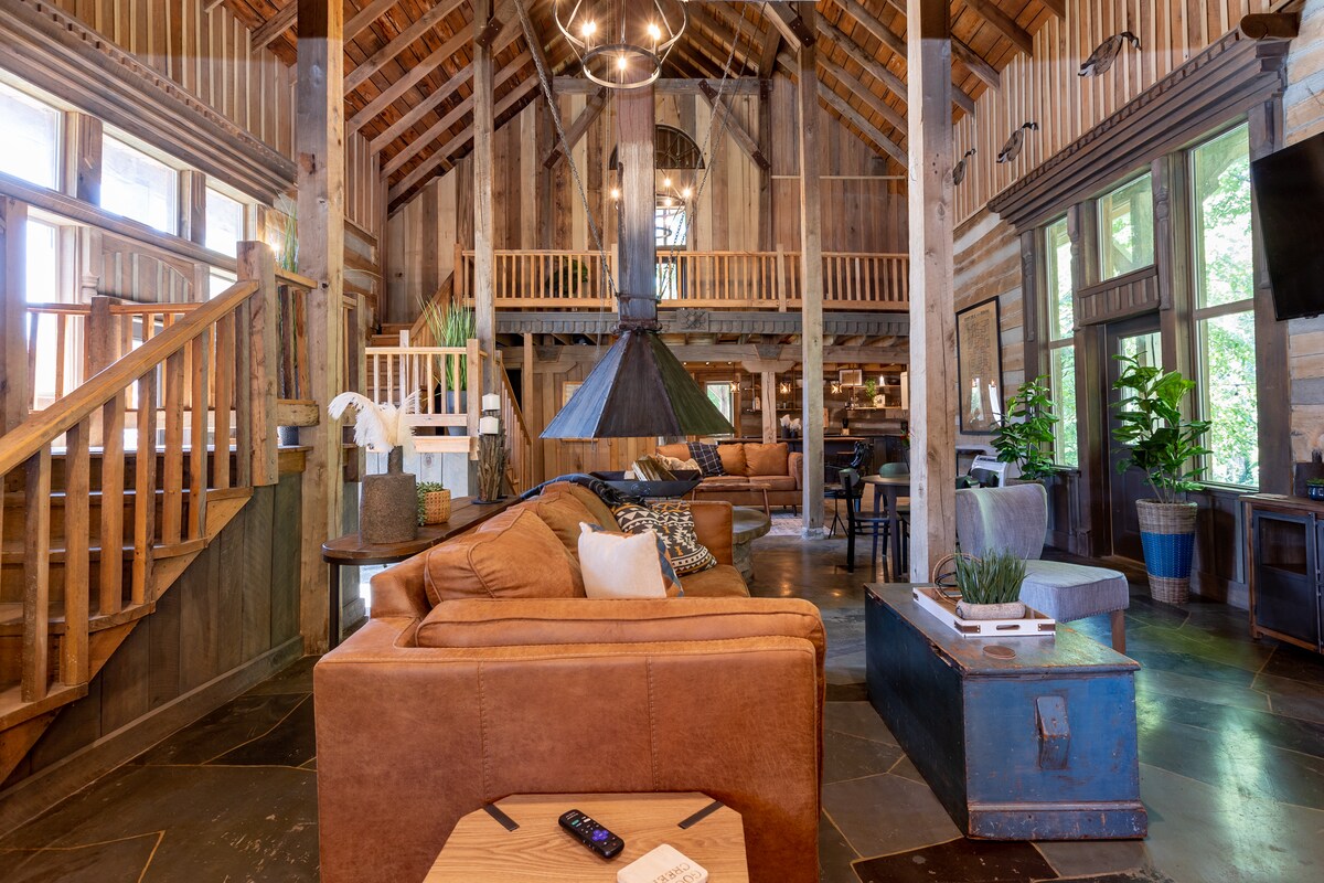 Este granero/cabaña de troncos único fue construido por un artesano creativo, Tom Kirkman. Este alojamiento ha sido publicado en un libro «From White House to Amish». La propiedad tiene dos lofts separados. El loft sur tiene un dormitorio principal con puertas francesas que conducen a una bañera de inmersión y ducha. El loft del lado norte tiene dos dormitorios con camas tamaño queen y un dormitorio con dos camas de tamaño completo. La planta principal tiene techos de catedral de 30', chimenea independiente suspendida en cadenas, mesa de comedor de 16' y cocina personalizada.