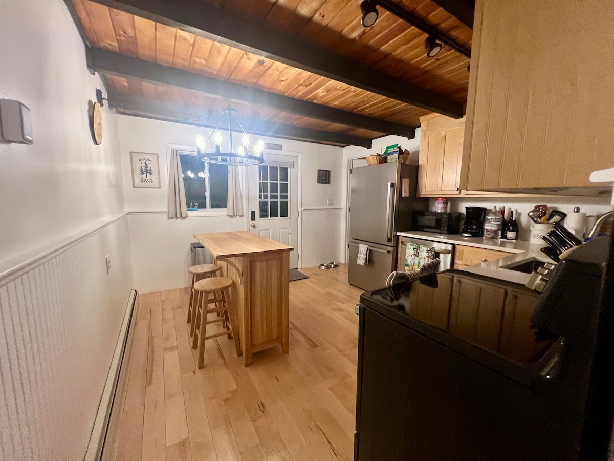 Este es un encantador chalet con hermosos techos de madera de cerezo acentuado con vigas de madera oscura, una estufa de leña, una isla de bloques de carnicería, nuevas mini divisiones de CA y mucho más. Se encuentra en una ubicación perfecta para todas las estaciones. En los meses más cálidos, estamos a 5 minutos de la hermosa playa estatal de Ellacoya en el lago Winnipesaukee y a 15 minutos de Weirs Beach y Boardwalk. En los meses de invierno, estamos a solo 5 minutos de Gunstock Mountain. Tenemos una cámara al aire libre en el cobertizo para ayudar con la administración de la propiedad.