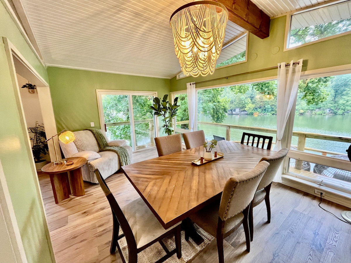 ¡Esto no es solo una casa, es una experiencia! Casa de ensueño de más de 2000 pies cuadrados con mucha iluminación natural. Lago sin un descenso empinado ni escaleras. Wifi de alta velocidad y televisores (sin cable) en todas partes. Se suministran todos los artículos básicos (jabón, secador de pelo), incluida una cocina totalmente equipada. 6 camas tamaño queen, 1 cama individual, 1 sofá cama individual y 1 cama completa y cama futón completa con 2,5 baños (consulta la sección de acceso). Juegos de arcade, juegos de interior/exterior, una mesa de juego para cartas/rompecabezas y un futbolín de tamaño completo.