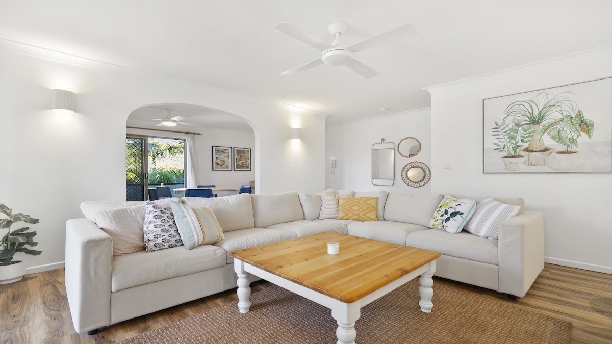 Diviértete con toda la familia en la hermosa isla de Bribie en tu propia casa estilo resort totalmente equipada, con aire acondicionado, renovada, con sala de juegos, mesa de billar, entretenimiento al aire libre, fogata, trampolín, refugio para niños, ropa de cama premium, aire acondicionado y mucho más. Ubicado a solo 1 minuto en auto / 5 minutos a pie de Sylvan Flat-Water Beach en Pumicestone Passage, a 8 minutos de Patrolled Surf Beach. ¡Un sinfín de actividades con deportes acuáticos, pesca, natación, parques infantiles, cafeterías, taberna, equipo de ejercicio al aire libre y más!