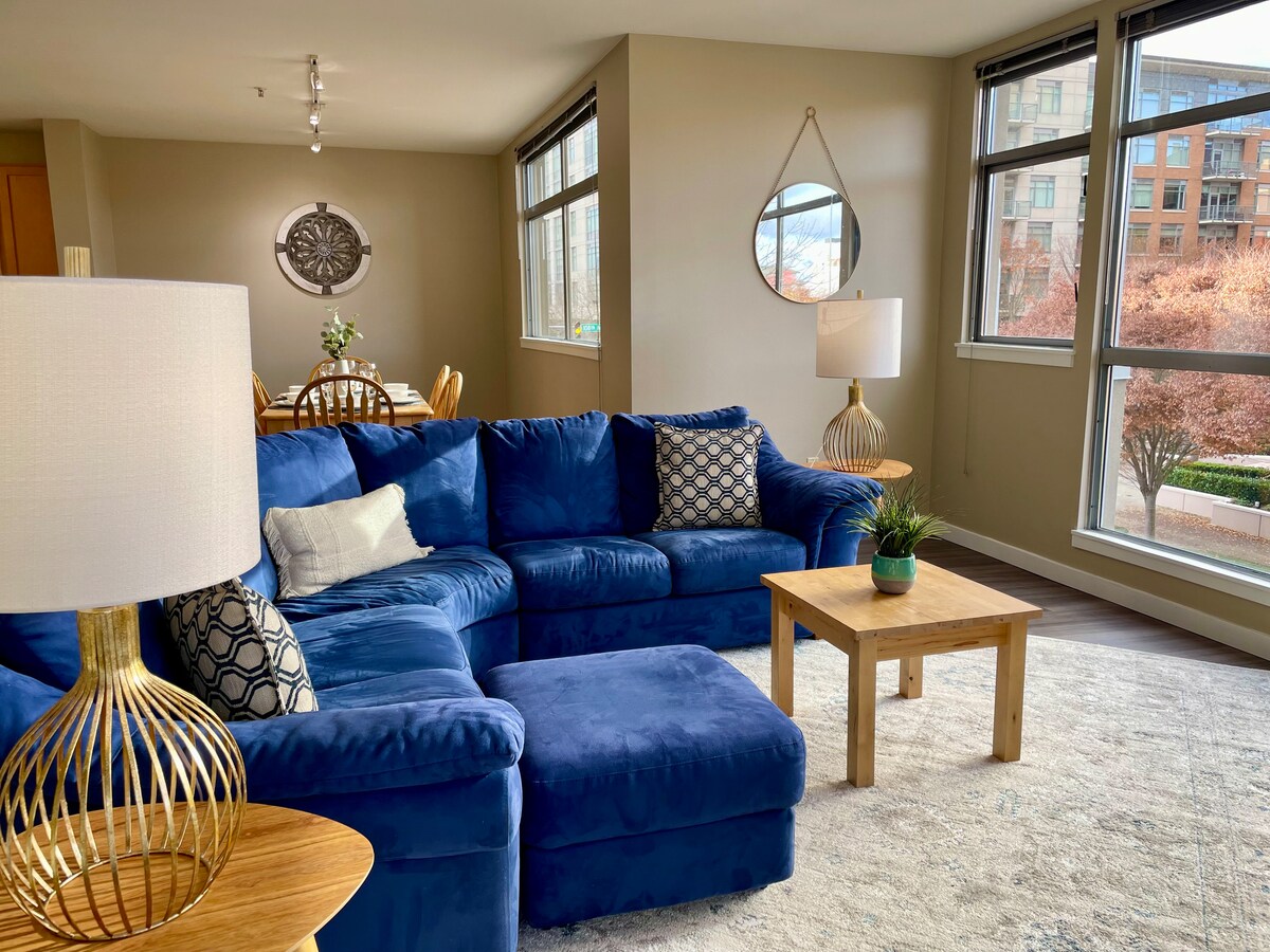 Te damos la bienvenida a la vida de lujo en el centro de Bellevue. Este elegante ático de 2 dormitorios y 2 baños ofrece una escapada urbana de primer nivel con ventanas del piso al techo que enmarcan el espectacular monte Vistas del Monte Rainier y amaneceres impresionantes. Diseñado para la comodidad moderna y la vida de primer nivel, el espacioso plano de planta abierto incluye un sofá plegable para huéspedes adicionales, lo que lo hace ideal para viajeros de negocios, familias o escapadas sofisticadas. Cada detalle refleja estilo, comodidad y exclusividad. Pregunte por un descuento.