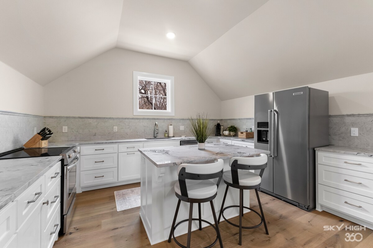 Este loft se encuentra encima del garaje de una casa bellamente remodelada en el corazón de Bentonville. Este pintoresco loft está separado de la casa principal y ofrece una entrada independiente que te brinda total privacidad durante tu estancia. Los grandes ventanales llenan la habitación de luz natural, dando al espacio una sensación luminosa, espaciosa y relajante. Servicios como un cobertizo para bicicletas, un fogón y una parrilla hacen de este el lugar perfecto para un viajero solitario, un grupo de ciclistas o una pequeña familia.