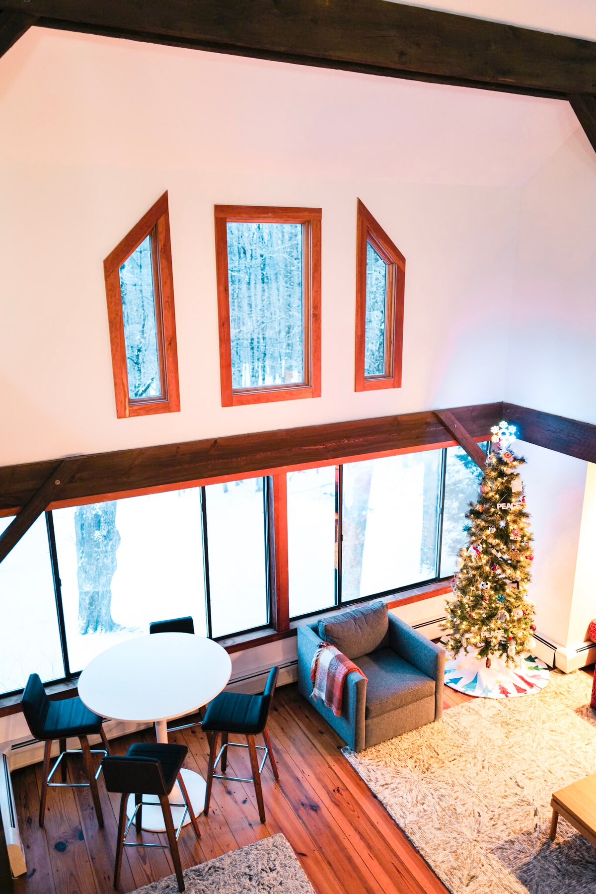 Esta joya arquitectónica con ventanas de vidrio envolventes da la bienvenida a los huéspedes con su interior informal de diseño único ubicado en 7 acres privados de bosque. Acurrúcate alrededor de la chimenea de leña con ventanales del suelo al techo como telón de fondo, o siéntate en la amplia terraza alrededor de la hoguera contemplando las estrellas. Utilízalo como base para las maravillosas actividades culturales y al aire libre de la zona, o disfruta de la naturaleza con lujo sin salir de casa. *Reserva entre semana para obtener tarifas con descuento. IG: @midcenturyoctagon