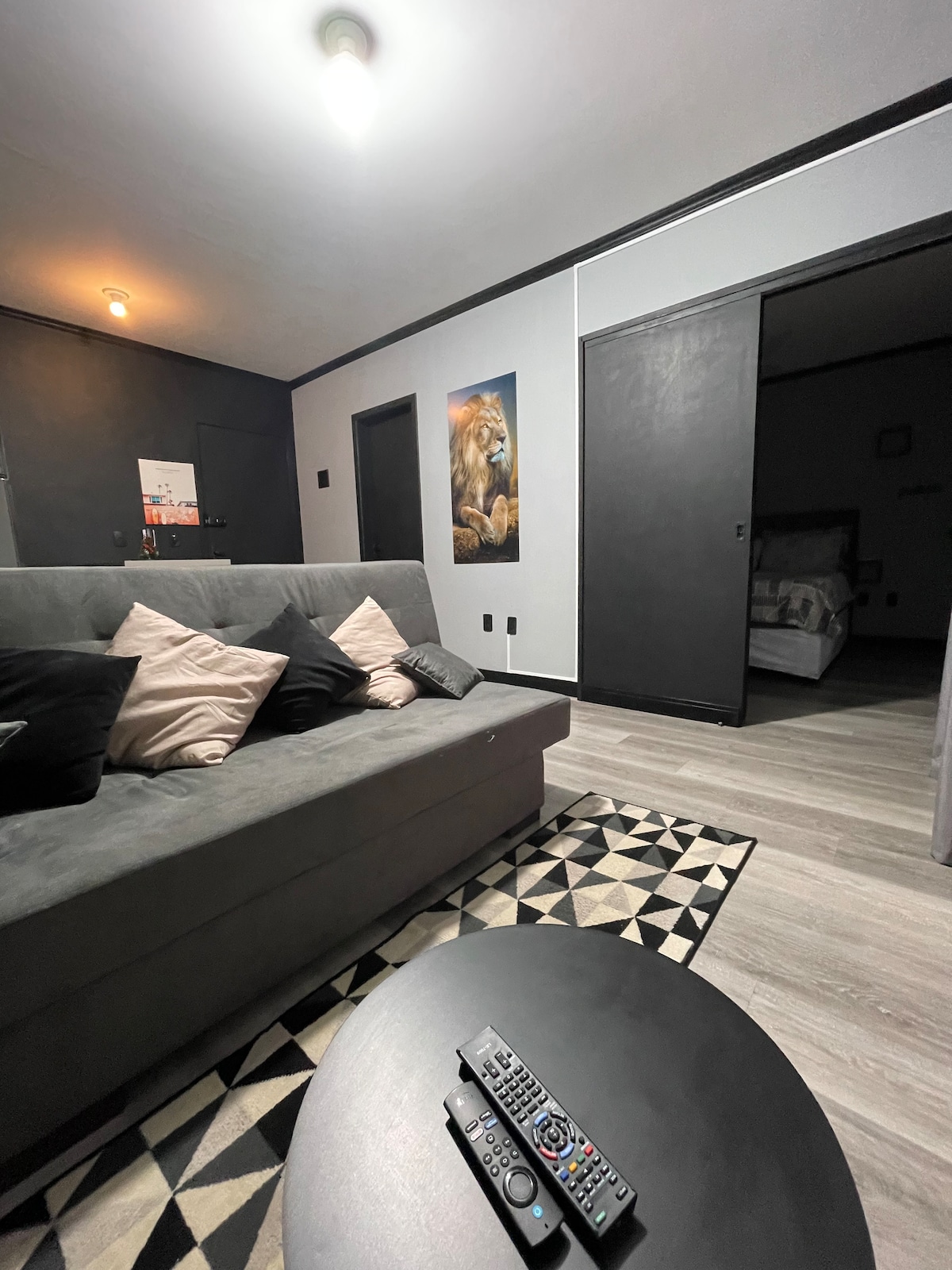 En la cabaña Pukuá podrás dormir contando las estrellas, porque encima de la cama hay un tragaluz. Además de la habitación con espacio para la oficina en casa, podrá relajarse en el sofá (o hamaca) en una sala súper acogedora. ¿Juegos de mesa, Netflix, Prime, Disney y Star GRATIS? ¡Los tenemos! La cocina está equipada con todo lo necesario. Nuestra cabaña mezcla lo rústico con la comodidad y cada detalle ha sido pensado para que su estancia sea lo más agradable posible. Baño espacioso y privado.