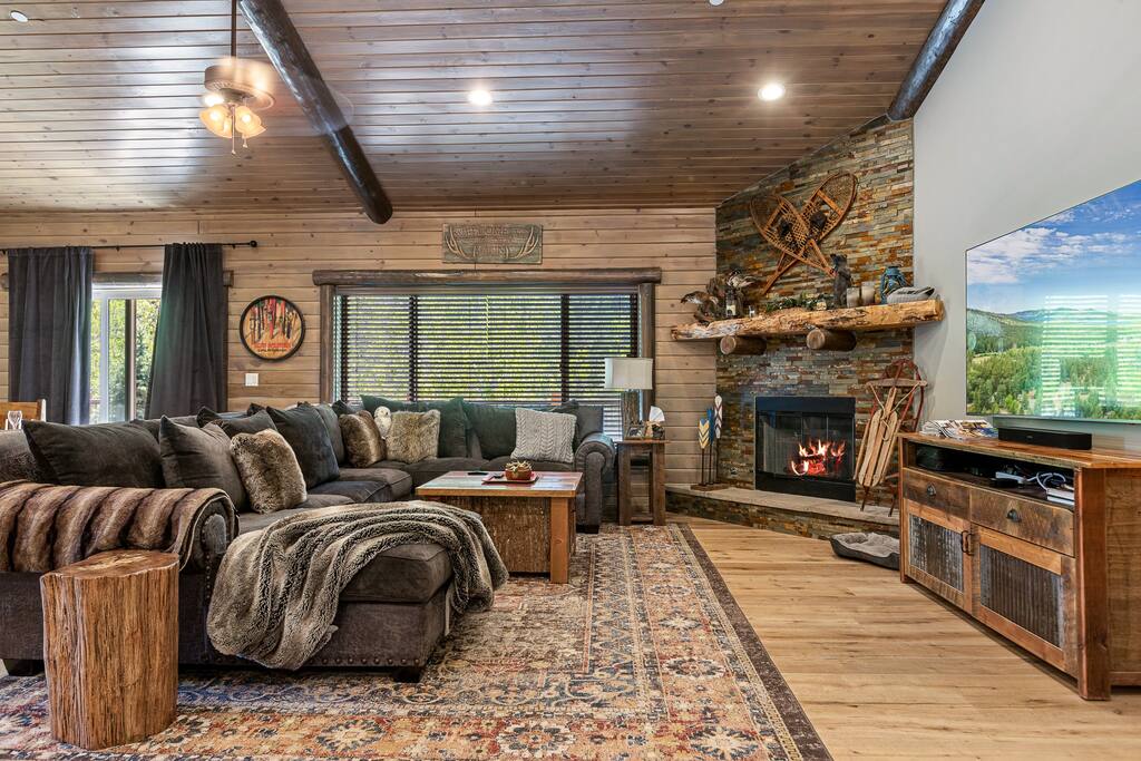 ¡Esta cálida y acogedora cabaña es justo lo que estás buscando!Brave Stone Cabin es moderna y espaciosa, con muchos espacios cuidadosamente decorados para que todos se relajen o se reúnan. La gran sala de nivel dividido cuenta con chimenea de leña, TV de 70 pulgadas, varias zonas de estar, impresionantes techos de vigas de madera y una cocina totalmente equipada. ¡Disfruta de la terraza privada con barbacoa y un patio arbolado totalmente vallado!¡Ubicada en la zona más deseable a solo minutos del lago, rutas de senderismo, estaciones de esquí y tiendas!