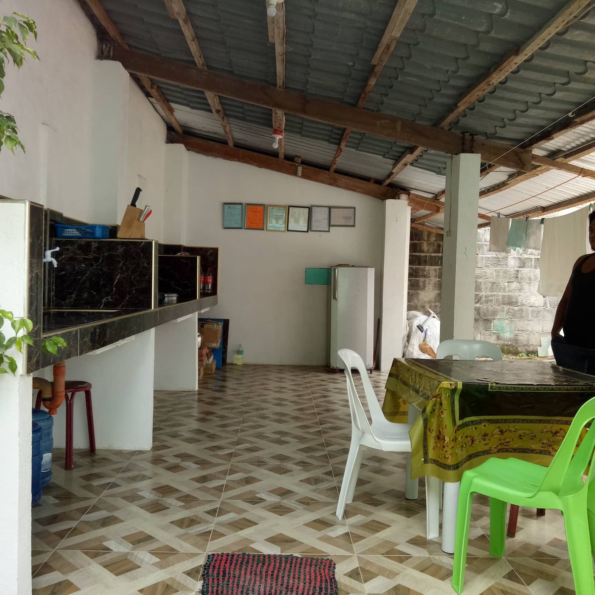The kitchen is equipped with a stove, pots and pans , cooking utensils, microwave oven, refrigerator, and Keurig coffee maker, etc. The house is in Alangalang, Leyte, a town far enough from the water in case of bad weather yet close enough to drive to the beaches and resorts. Grocery store is about 10 mins away. Transportation to and from the airport is available. Please message upon booking to make arrangements