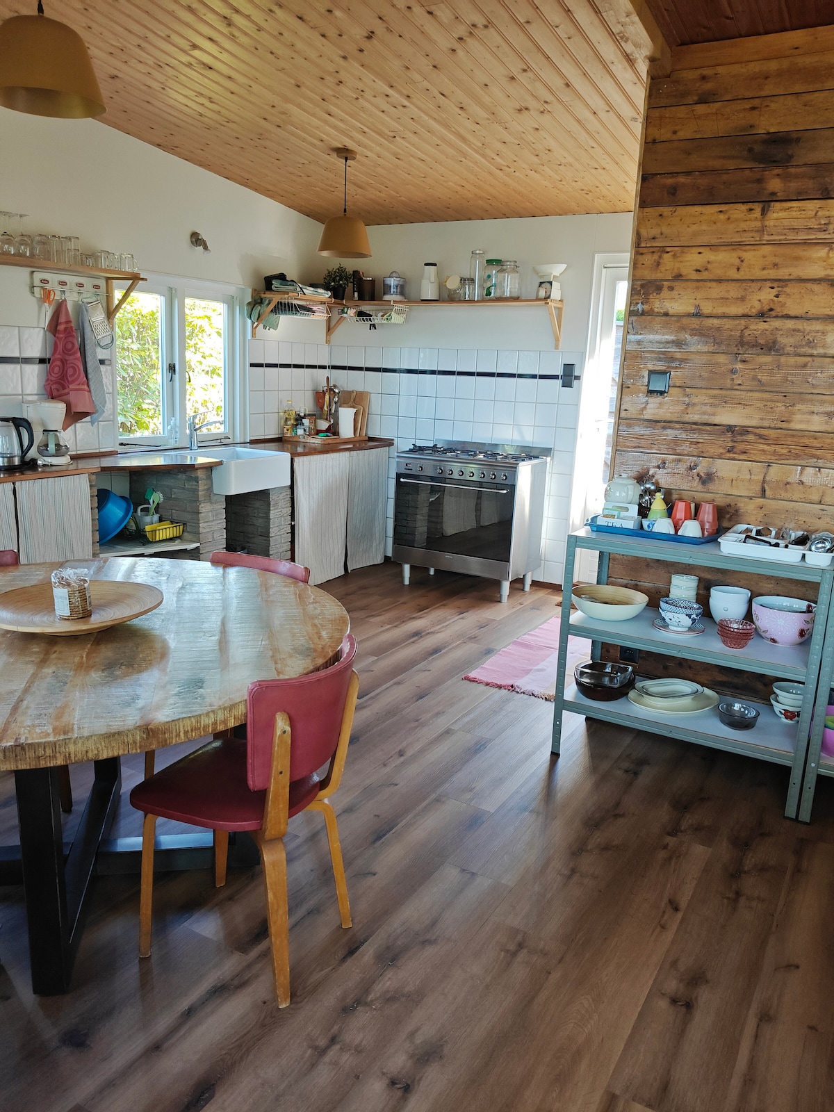 Encantadora casa de campo en el jardín. Escandinavo amueblado con cocina, baño, zona de comedor y suficiente espacio para jugar para los niños. Arriba, dos dormitorios bajo un techo inclinado, equipados con lavabo y espejo privados, y una pequeña habitación dulce con una cómoda y una cuna. En el sótano hay un bar, futbolín y sofá con televisión. Fuera de un espacioso jardín con casa de juegos y trampolín. NUEVO jacuzzi de leña en el jardín. POR FAVOR, TEN EN CUENTA que hay madera disponible para calentar 1 jacuzzi. CAFÉ NESPRESSO