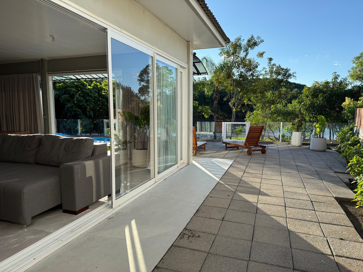 Con una vista espectacular del lago, esta casa tiene todo lo que necesitas... para conectar con la naturaleza y disfrutar en familia. Aire acondicionado en todas las habitaciones, gran área de fiesta con piscina climatizada, karaoke, TV de 70 pulgadas, cocina completa, dos suites y dos dormitorios, mesa de billar, mesa de cartas y chimenea. Muelle privado para pescar o para estar más cerca del lago.