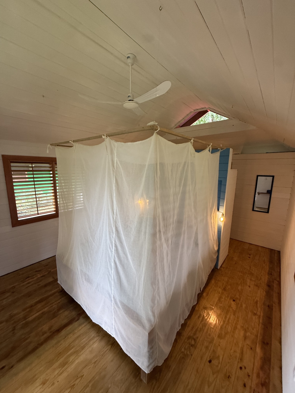 Esta pequeña y luminosa habitación doble es ideal para una pareja o un viajero solo. Puedes disfrutar de una bonita vista a la selva desde la cama y desde la ducha. Puedes usar una cocina compartida y todas nuestras terrazas públicas. El lugar perfecto para viajar si te gusta dormir en la verdadera naturaleza con un océano a pocos pasos y con animales a tu alrededor.
