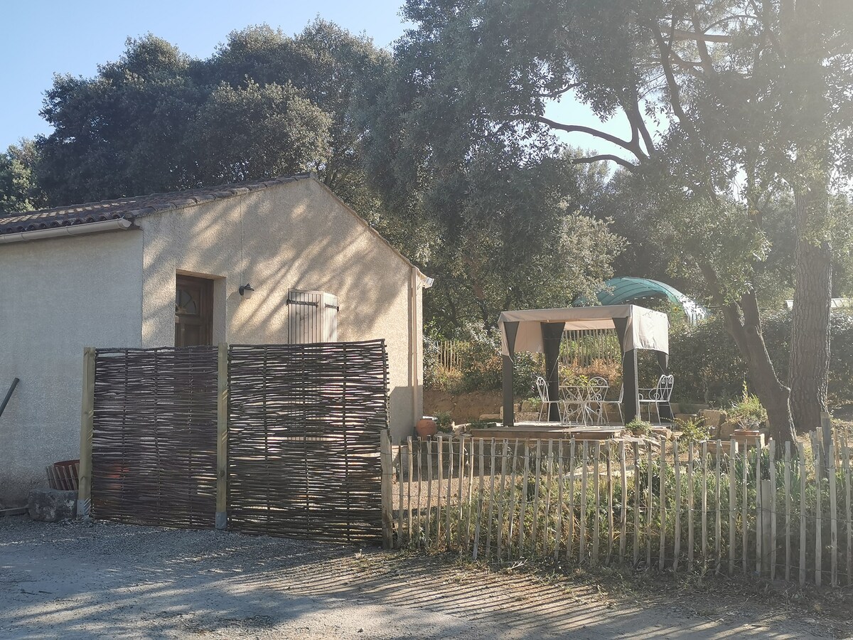 Habitación independiente tipo estudio, a 5 minutos a pie del centro de la ciudad y del mercado de Sommières, situada en una zona tranquila en las alturas occidentales del centro de la ciudad, perfecta para un fin de semana en pareja, para visitar la ciudad o pasear por las garrigas. Aparcamiento privado, anexo independiente con acceso directo sin escaleras, hermosa habitación con aire acondicionado, con plancha, cafetera, nevera, baño y WC independientes. Y un espacio exterior bajo los árboles para el café de la mañana o la cena.