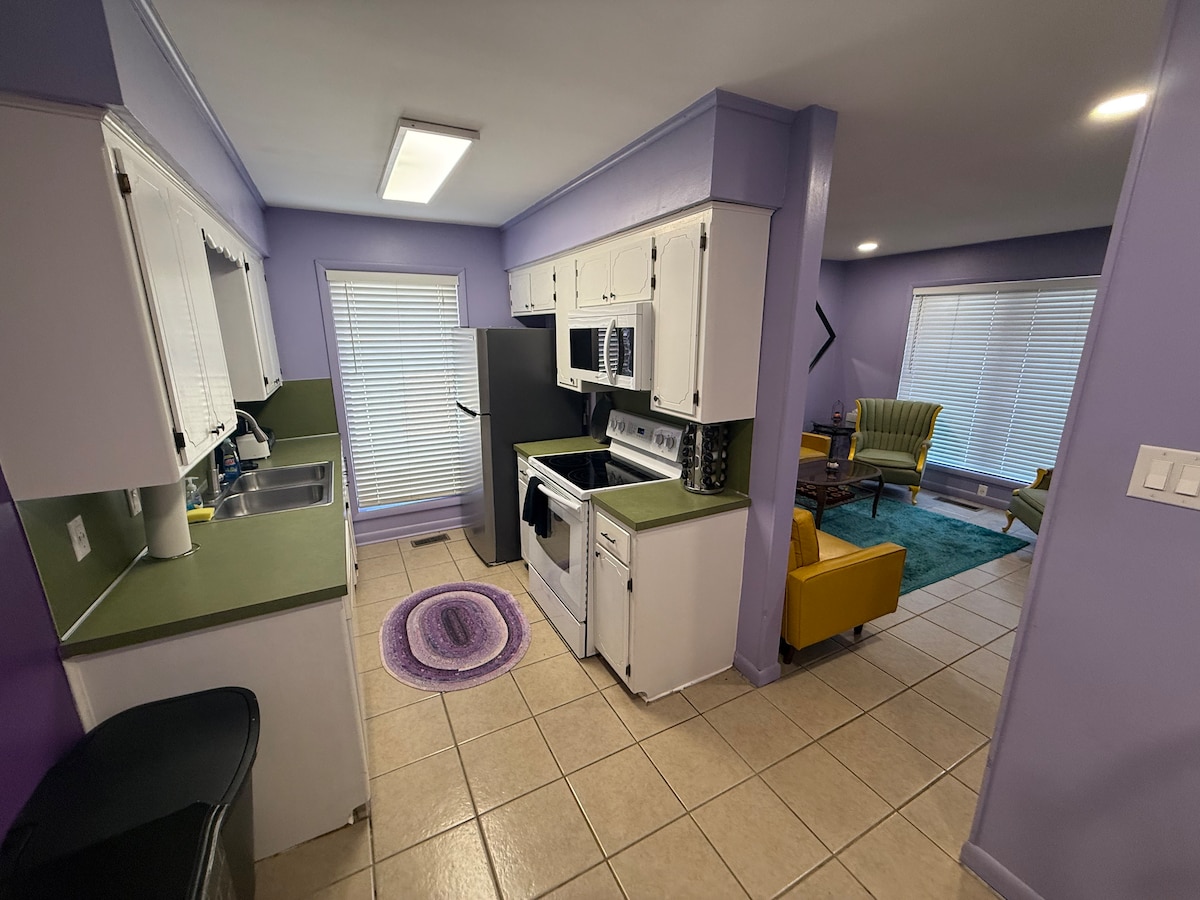 Espacio tranquilo, acogedor y cómodo para desconectar y relajarse. Ubicado en un barrio céntrico, tranquilo e histórico, perfecto para caminar. El patio trasero es ideal para asar a la parrilla, un fogón y cenar. Transmite tus series y películas favoritas en el televisor de 55 pulgadas. Disfruta de tu estancia cocinando tus propias comidas en nuestra cocina totalmente equipada. Hay una bañera de inmersión profunda disponible para tu comodidad. Termina tu estancia con las mejores noches de sueño en nuestras camas de lujo. ¡Despiértate renovado para tu día!