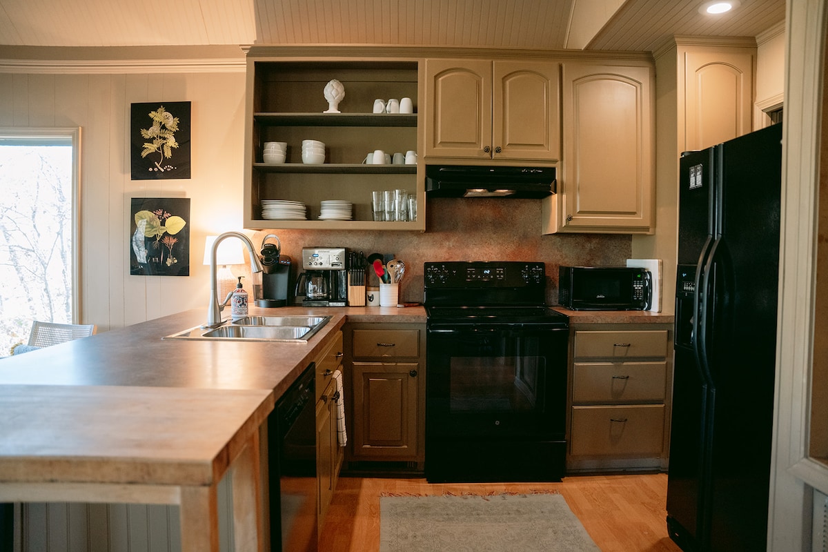 Cabaña romántica; escapada campestre perfecta y única. 1440 pies cuadrados de plano abierto con cama tamaño king en el área principal, WiFi, televisor inteligente de 75 pulgadas (sin cable, usa tus aplicaciones de televisión), chimeneas eléctricas, cocina (sin lavavajillas), lavadora y secadora de tamaño completo, comedor, vestidor, un baño con ducha y bañera. Habitación contigua separada por cortinas y muebles, no paredes/puertas. Incluye una cama doble con una cama nido que la convierte en una cama tamaño king. ¡Se encuentra en 20 acres vallados con entrada cerrada segura, fogata y estanque de pesca que no decepcionará!