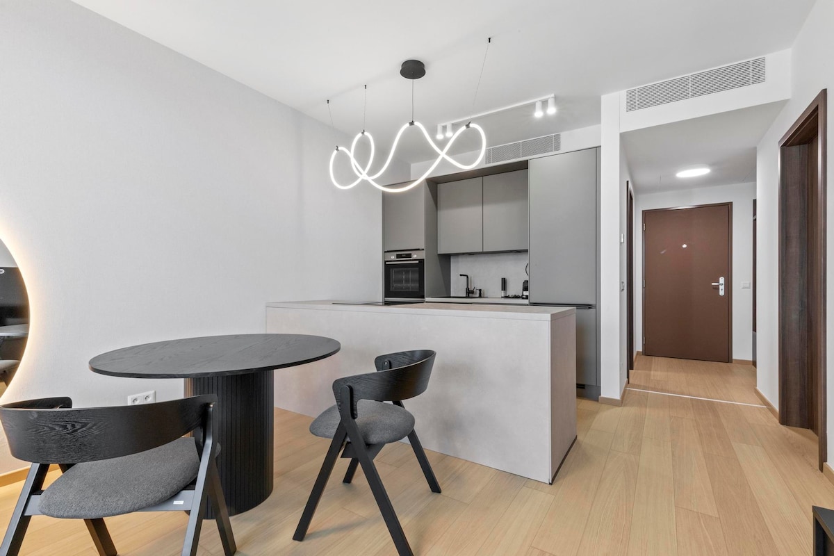 Descubra un elegante apartamento a estrenar en Bratislava, a solo 8 minutos a pie del estadio Tehelné Pole y del estadio de invierno Ondrej Nepela, y a solo 10 minutos a pie del estadio Pasienky. Ideal para dos, este acogedor refugio ofrece una serena vista al jardín y un ambiente tranquilo. Disfrute de la comodidad de una parada de tranvía cercana, que le llevará al centro de la ciudad en solo 10 minutos. *Los huéspedes deben presentar su identificación a su llegada.