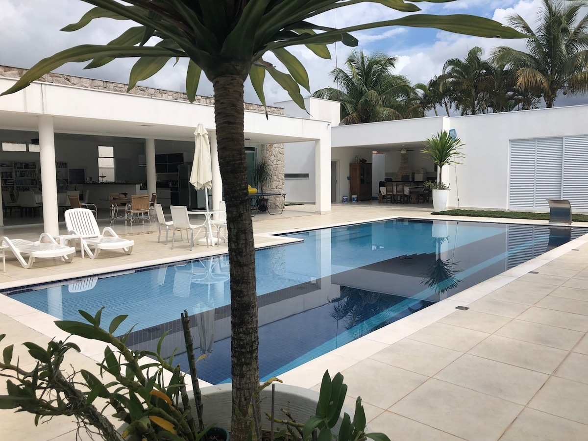 MARAVILLOSA CASA DE TERRENO Wifi de 400 MB en toda la casa > 4 suites con aire acondicionado + TV. > 5 baños más un medio baño > Piscina privada con playa y rayas. Parrilla, horno para pizza y estufa. >Lavandería con lavavajillas y lavadoras. > Sala de cine con aire acondicionado, SmartTV c/ Netflix, Disney, HBOMax, Prime Video, Globoplay. > Cocina totalmente equipada con estufa, 1 refrigerador, 1 congelador, microondas, freidora de aire, utensilios de cocina y utensilios. > Sinuca, ping-pong y mesa de cartas.