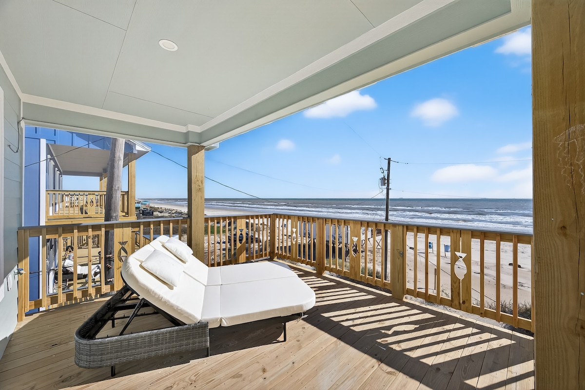 ¡NUEVA construcción frente a la playa! ¡Verdaderamente un unicornio:🦄 UBICACIÓN, LUJO y tan agradable tenerlo NUEVO! ¡Ubicado a pocos pasos de los mejores restaurantes y playa en Surfside! Disfruta de hamacas y juegos debajo de la casa. ¡Sube los escalones hasta una impresionante terraza sombreada con vistas desde San Luis Pass hasta el embarcadero! Vistas despejadas de 180 grados. Dormitorios abiertos a SunDeck y observación de estrellas con 🔥 fogata YouTube Beachfront Luxe para video ¡Tarifa de limpieza de $ 125 y solo $ 75 en total para un máximo de 2 mascotas para toda la estancia!