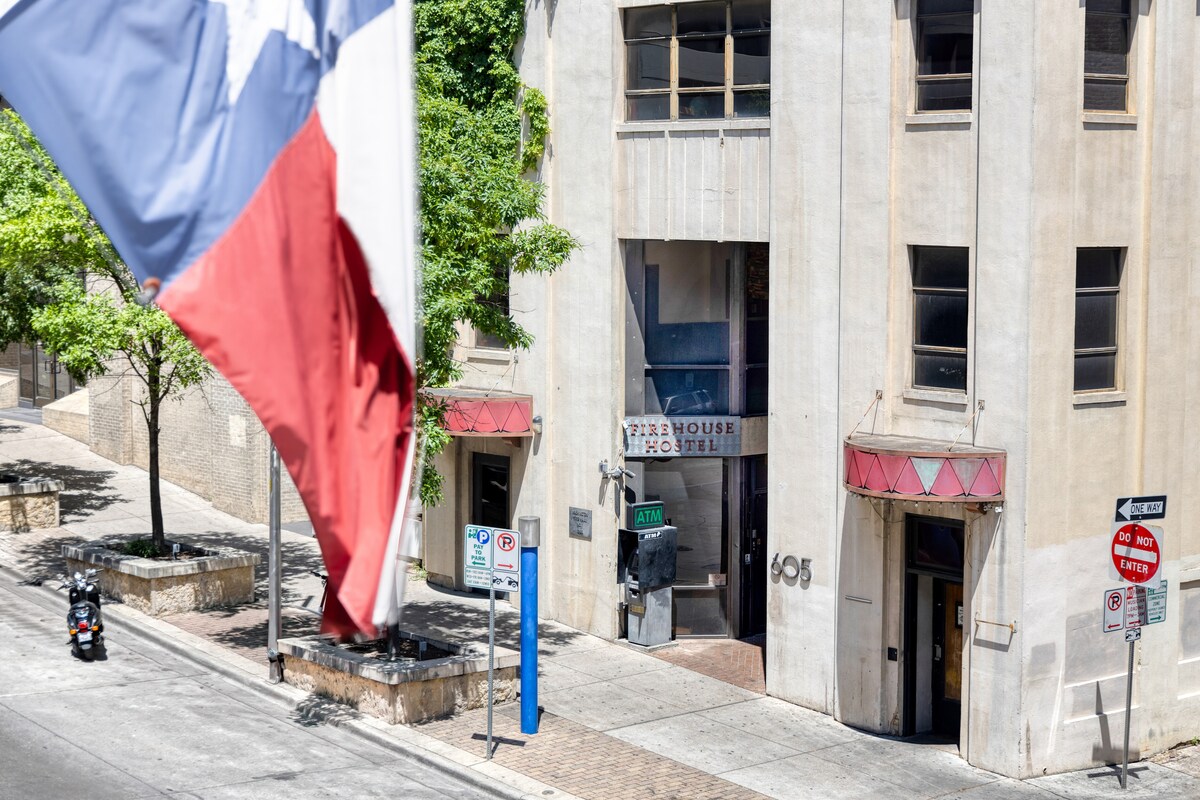 ¡Te damos la bienvenida al corazón de Austin! ¡La estación de bomberos es el único hostal en el centro de Austin! El edificio está escondido a la vuelta de la esquina de la histórica 6th Street, con su legendaria vida nocturna y su escena musical en vivo. La estación de bomberos sirve como la base de operaciones perfecta en medio de toda la acción. Esta lista es para una cama individual en un dormitorio de género mixto (compartido con otros huéspedes).