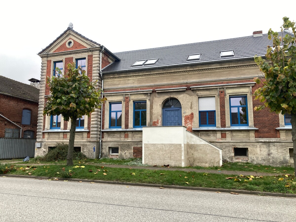 Frisch renovierte 1-Zimmer-Wohnung mit Küche und Duschbad in Havelberg. Das Haus ist im 19. Jh. erbaut worden und wird seit 2021 renoviert. So sind einige moderne Ferienapartments in diesem Haus entstanden. Zudem gibt es im Garten direkt vor dem Haus für unsere Gäste kostenlos mitzubenutzen einen Grillplatz mit Feuerkorb, eine Sauna und einen Hot Tub (Badewanne für 6 Personen). Eine Fahrradgarage ist ebenfalls direkt auf dem Grundstück vorhanden und im Preis der Unterkunft inbegriffen.