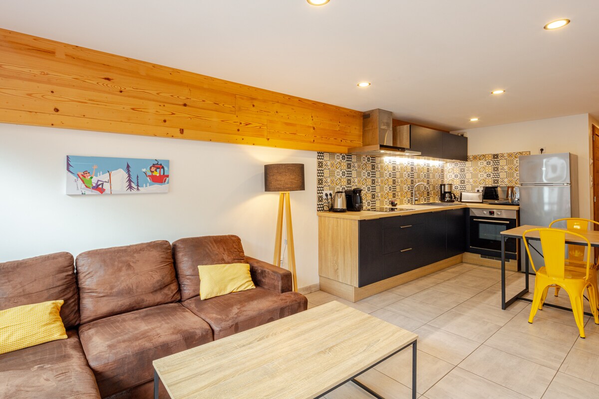 Bonito estudio reformado con una cama doble y 2 literas. 28m² se sentirá cómodo para almacenar el imponente equipo para esquiar. El apartamento está muy bien equipado con material nuevo de buena calidad: aspiradora dyson, TV LG 4 K de 43'' (108 cm), horno, lavavajillas, hervidor de agua, cafetera, tostadora , rasqueta, fundido... El baño está equipado con una ducha y un calentador de toallas. TENGA CUIDADO CON la ropa de cama, toallas y paños de cocina no se proporcionan.