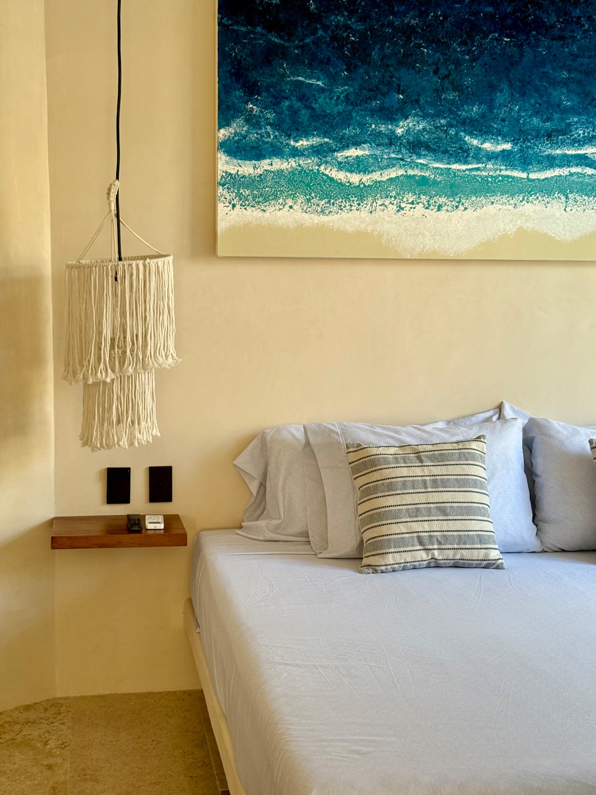 This unique place has a style all its own. It has a queen sized bed, a/c, excellent internet (STARLINK), private bathroom with hot water, smart tv and a closet. Small kitchen, fridge perfect if you like to cook your favorite dish while on vacation. Also it has a balcony with a nice view perfect to sip some coffee and relax. We are less than 3 minutes away walking to zicatela beach and it’s located at a peaceful neighborhood (located 3rd floor)