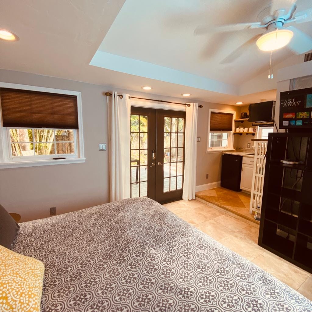 Escápate a esta pequeña casa independiente de estilo español en el histórico Croissant Park de Fort Lauderdale. Esta casa de invitados de 1 dormitorio y 1 baño cuenta con una decoración de diseño vintage, una cama tamaño queen, cocina, wifi rápido y un espacio de trabajo dedicado, perfecto para parejas o trabajo remoto. Disfruta de la mesa de comedor al aire libre en el jardín compartido y del acceso rápido al aeropuerto FLL (5 min), Las Olas Blvd (8 min) y Fort Lauderdale Beach (10 min). La minicasa está separada de la casa principal, algunos espacios son compartidos.