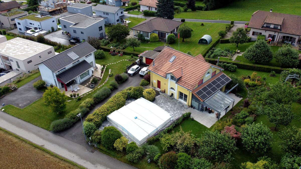 La Villa Joly - Entre tranquilidad y naturaleza Situado en Avenches, en la región de los Tres Lagos (Morat, Neuchâtel, Bienne), cerca de los lagos, pistas de esquí y las principales ciudades (Friburgo, Berna, Neuchâtel, Lausana), es el punto de partida ideal para explorar la zona. esta casa ofrece tranquilidad y naturaleza. Con 3 habitaciones dobles, un sofá cama y un jardín, puede alojar hasta 8 personas. Aparcamiento privado y estación de carga (de pago) para coche eléctrico disponibles