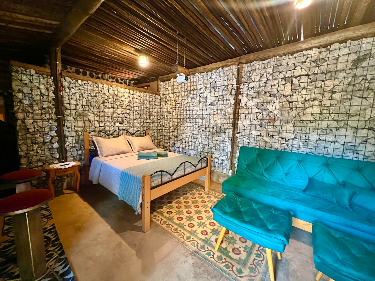 Glamping Sopé do Rola Moça. Independiente de la Casa Principal, con césped, huerta y distancia privilegiada al arroyo. Aquí compartimos silencio, bienestar e integración con la naturaleza. Área de 2.550mt solo para usted. Frente a la Sierra, cocina gourmet, .... ideal para 02 personas. Lugar destinado al descanso y reposición de buenas energías. Experiencia única de la sencillez de la vida en el campo en un lugar propio. Por intentos anteriores no recibimos mascotas.