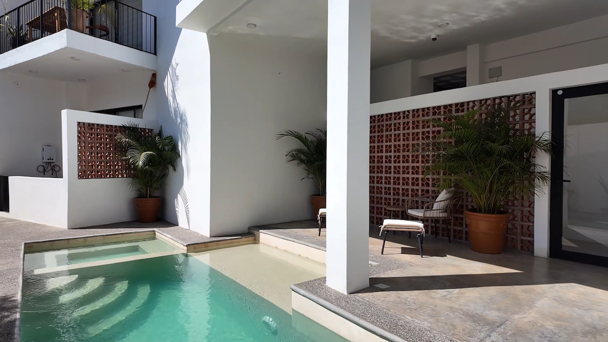 Esta unidad de 1 dormitorio se encuentra a pocos pasos de la playa principal de Sayulita, que ofrece el equilibrio perfecto entre la comodidad central y la relajación en la ladera. Ubicado justo en el corazón de la ciudad, el entorno elevado lo hace sentir como una escapada tranquila de las animadas calles de abajo. El alojamiento cuenta con una cocina, una sala de estar y un espacio de trabajo. Los huéspedes también tienen acceso a la piscina compartida de la propiedad, un lugar perfecto para relajarse y descansar.