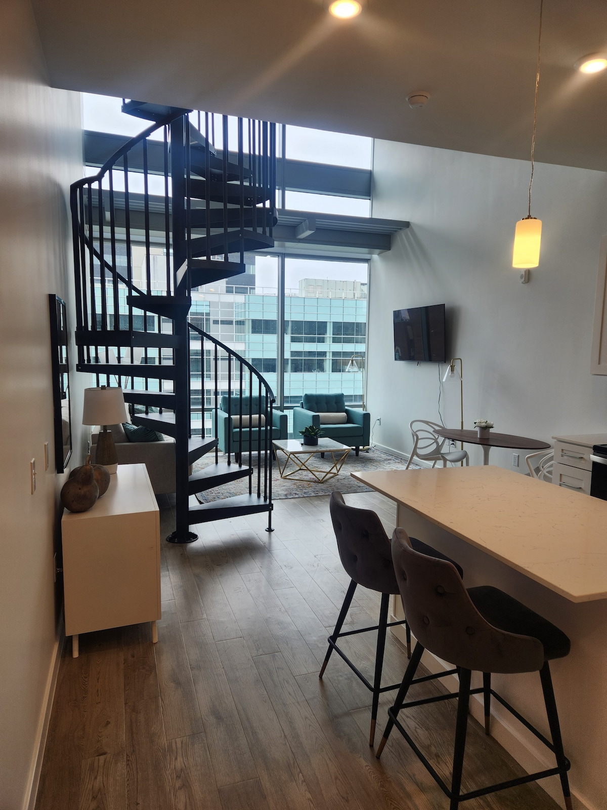 Disfruta de la comodidad y la conveniencia de este elegante apartamento en el cuarto piso situado en el corazón de Allentown, a pocos pasos del PPL Arena y del nuevo Da Vinci Science Center. Disfruta de unas impresionantes vistas del horizonte de Allentown desde tu espacio de estar de concepto abierto, con una cocina moderna, una acogedora sala de estar y una luz natural brillante en todo el alojamiento. El apartamento está diseñado tanto para el descanso como para la productividad, perfecto para viajeros de negocios, parejas o cualquier persona que busque disfrutar de la vida en la ciudad.